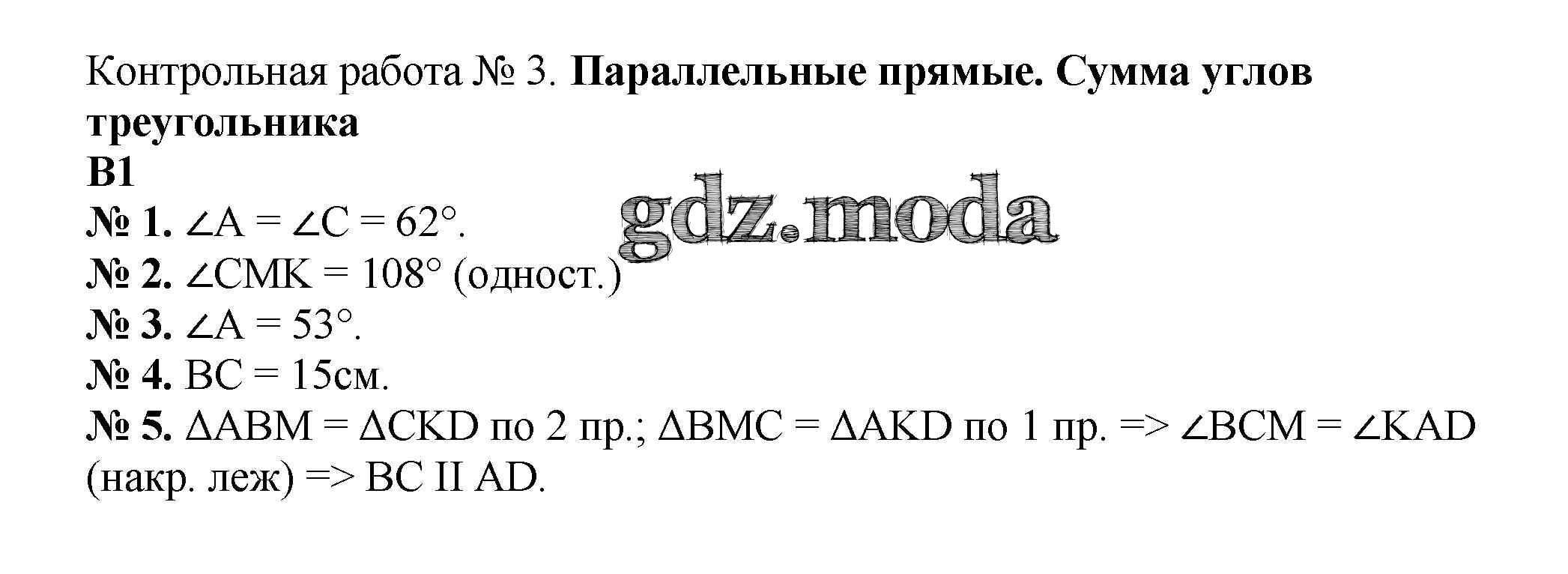 ОТВЕТ на задание № КР-3 Дидактические материалы по Геометрии 7 класс Мерзляк Алгоритм успеха