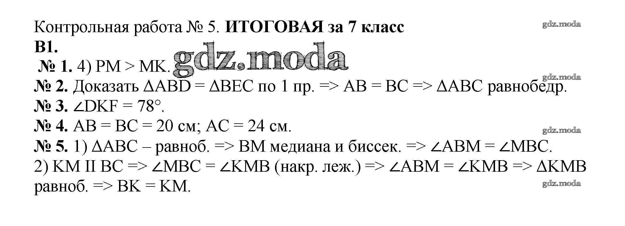 ОТВЕТ на задание № КР-5 Дидактические материалы по Геометрии 7 класс Мерзляк Алгоритм успеха