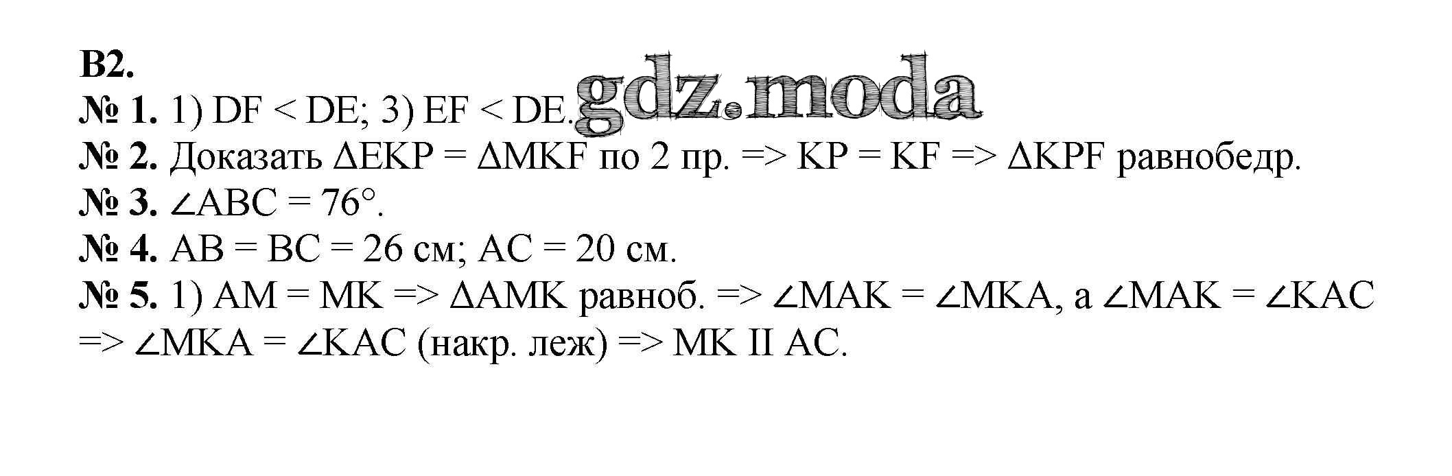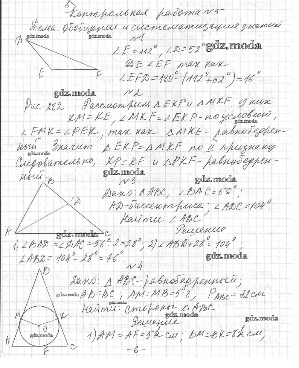 ОТВЕТ на задание № КР-5 Дидактические материалы по Геометрии 7 класс Мерзляк Алгоритм успеха