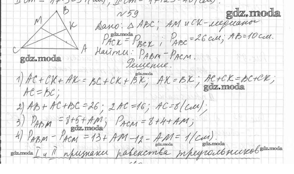 ОТВЕТ на задание № 59 Дидактические материалы по Геометрии 7 класс Мерзляк Алгоритм успеха