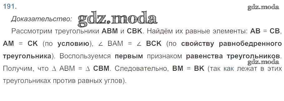 ОТВЕТ на задание № 191 Рабочая тетрадь по Геометрии 7 класс Дудницын