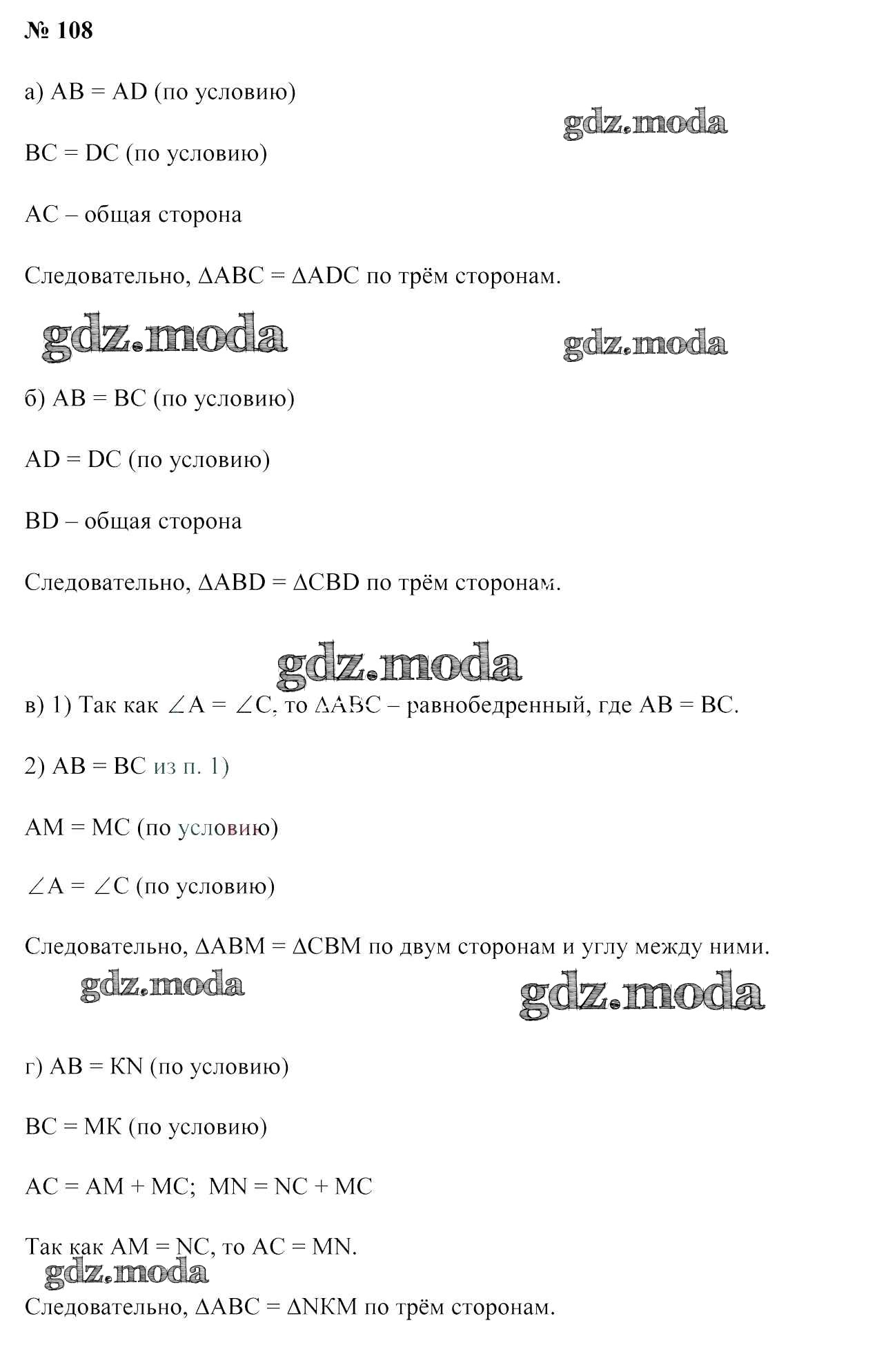 ОТВЕТ на задание № 108 Учебник по Геометрии 7 класс Казаков