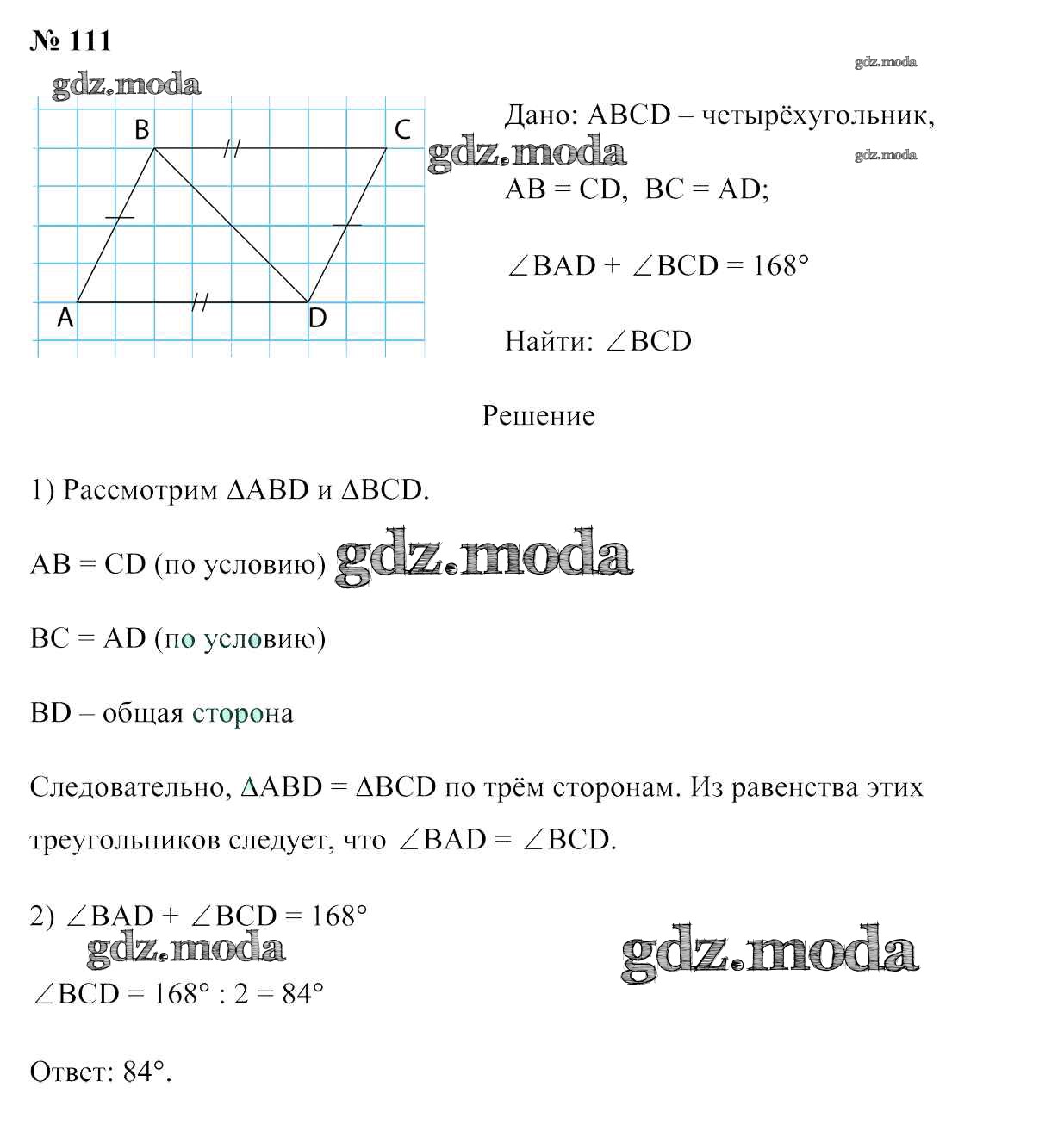 ОТВЕТ на задание № 111 Учебник по Геометрии 7 класс Казаков