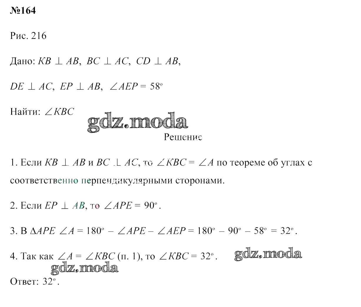 ОТВЕТ на задание № 164 Учебник по Геометрии 7 класс Казаков