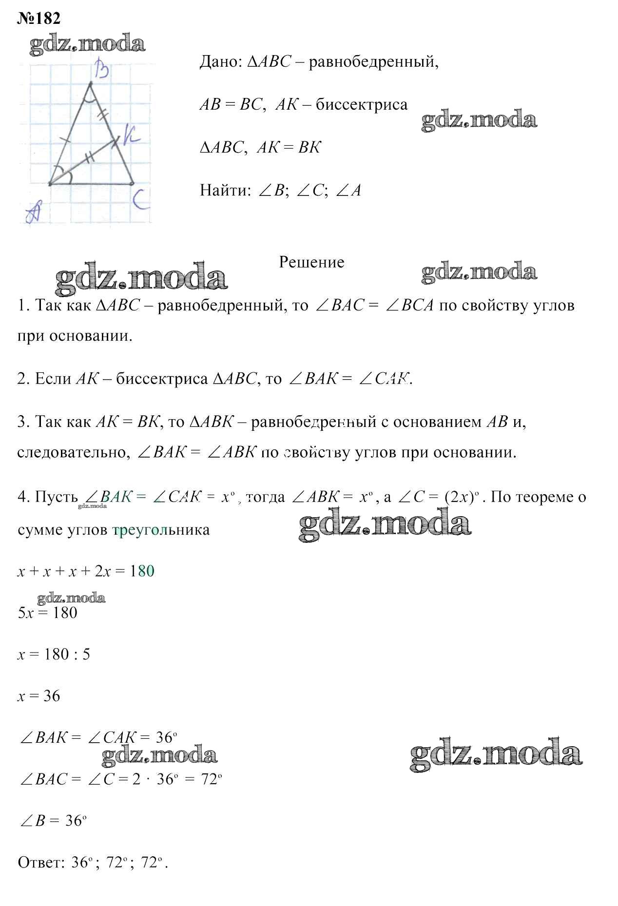ОТВЕТ на задание № 182 Учебник по Геометрии 7 класс Казаков