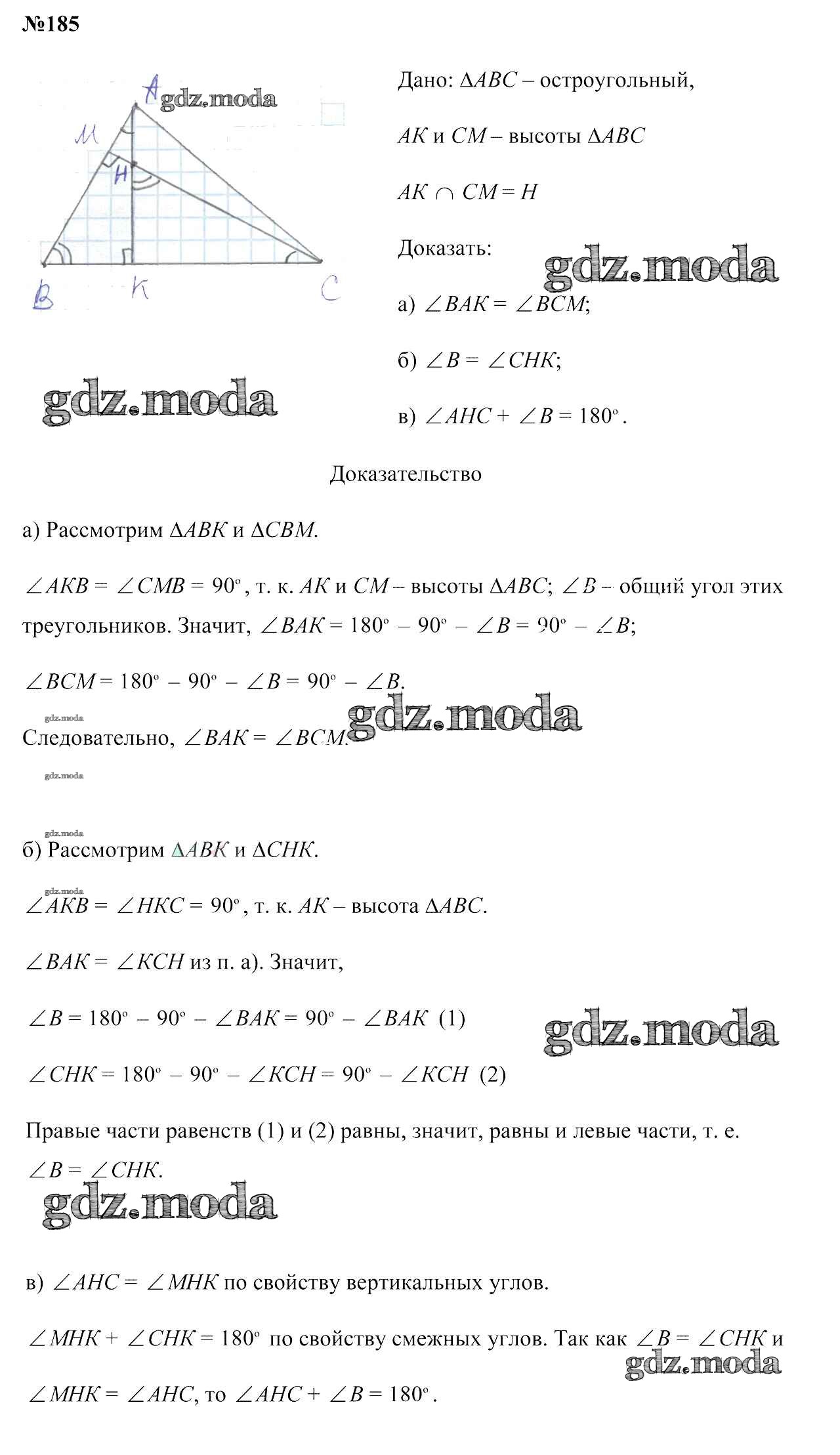 ОТВЕТ на задание № 185 Учебник по Геометрии 7 класс Казаков