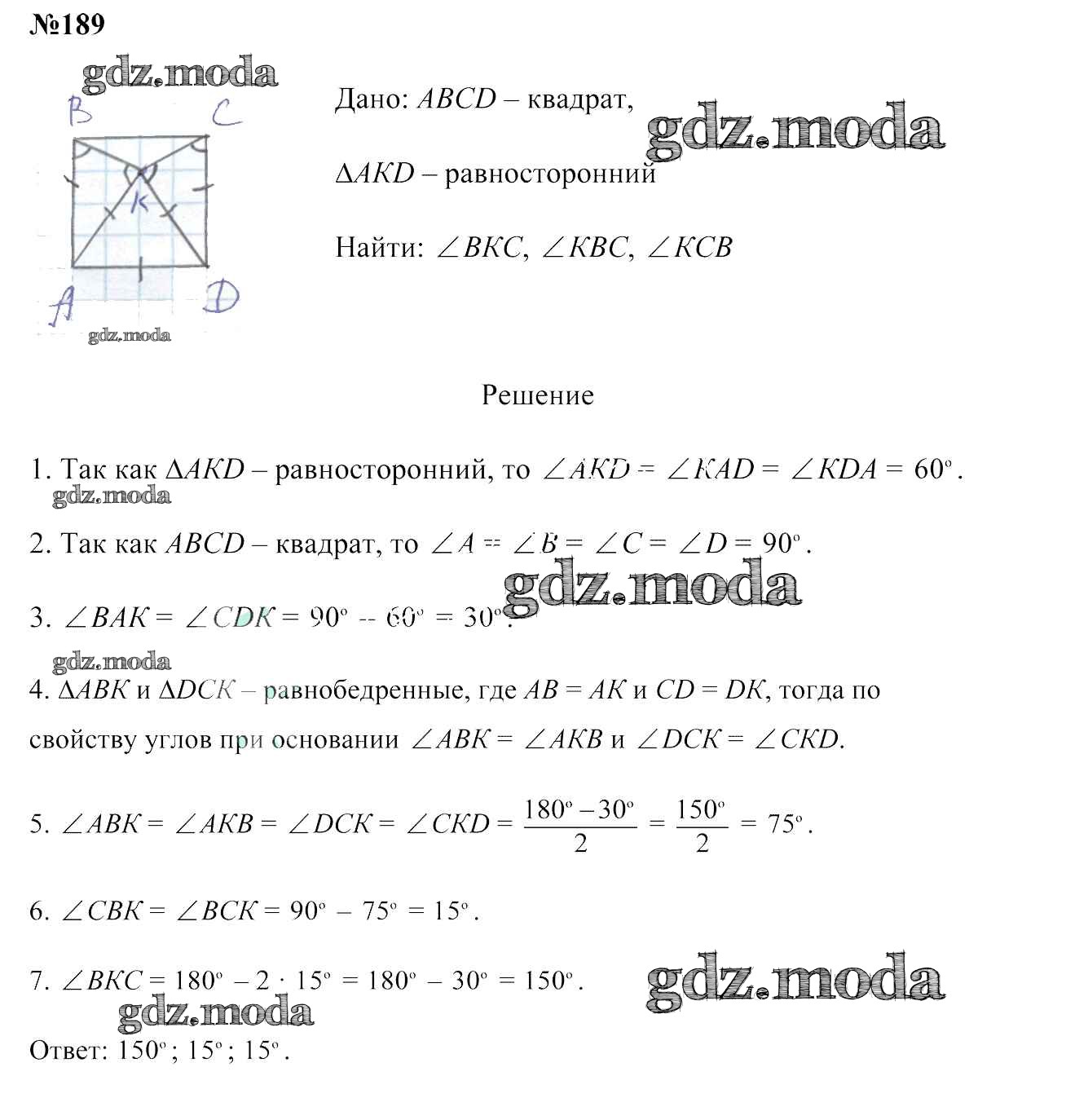 ОТВЕТ на задание № 189 Учебник по Геометрии 7 класс Казаков