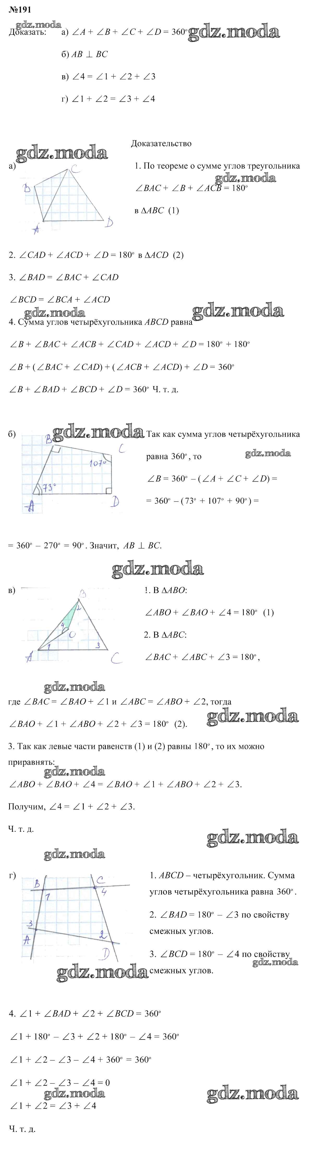 ОТВЕТ на задание № 191 Учебник по Геометрии 7 класс Казаков