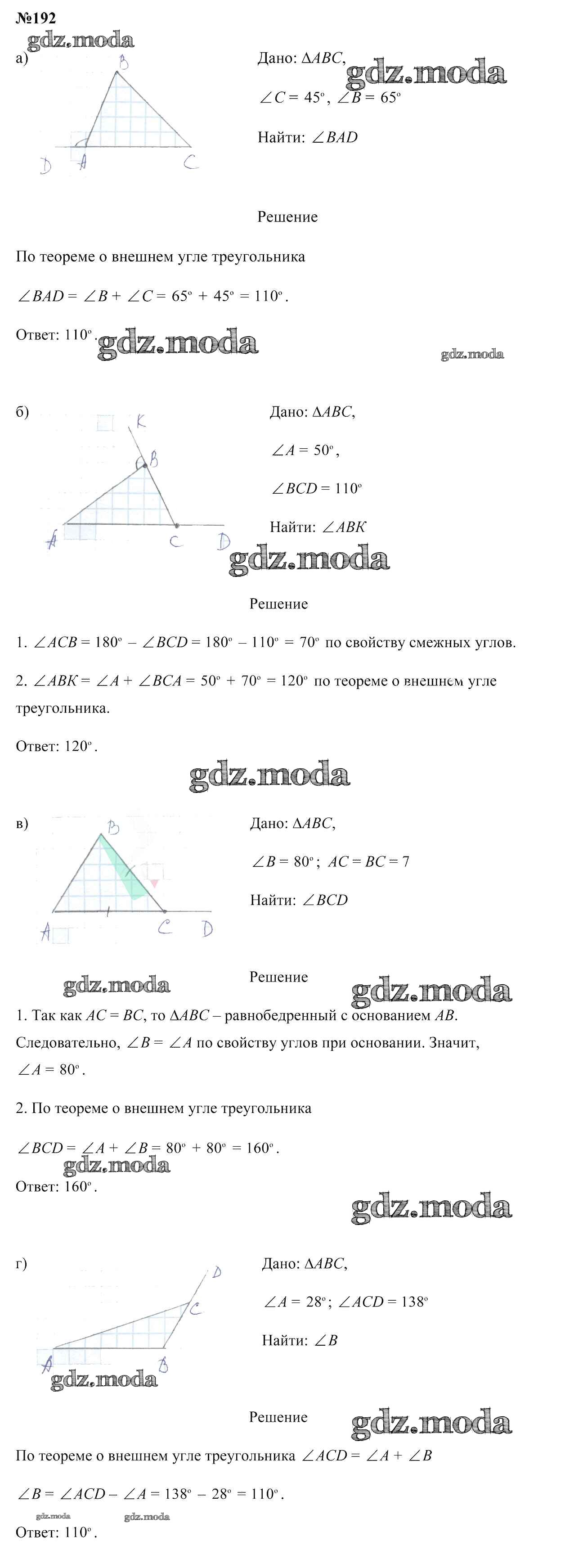 ОТВЕТ на задание № 192 Учебник по Геометрии 7 класс Казаков