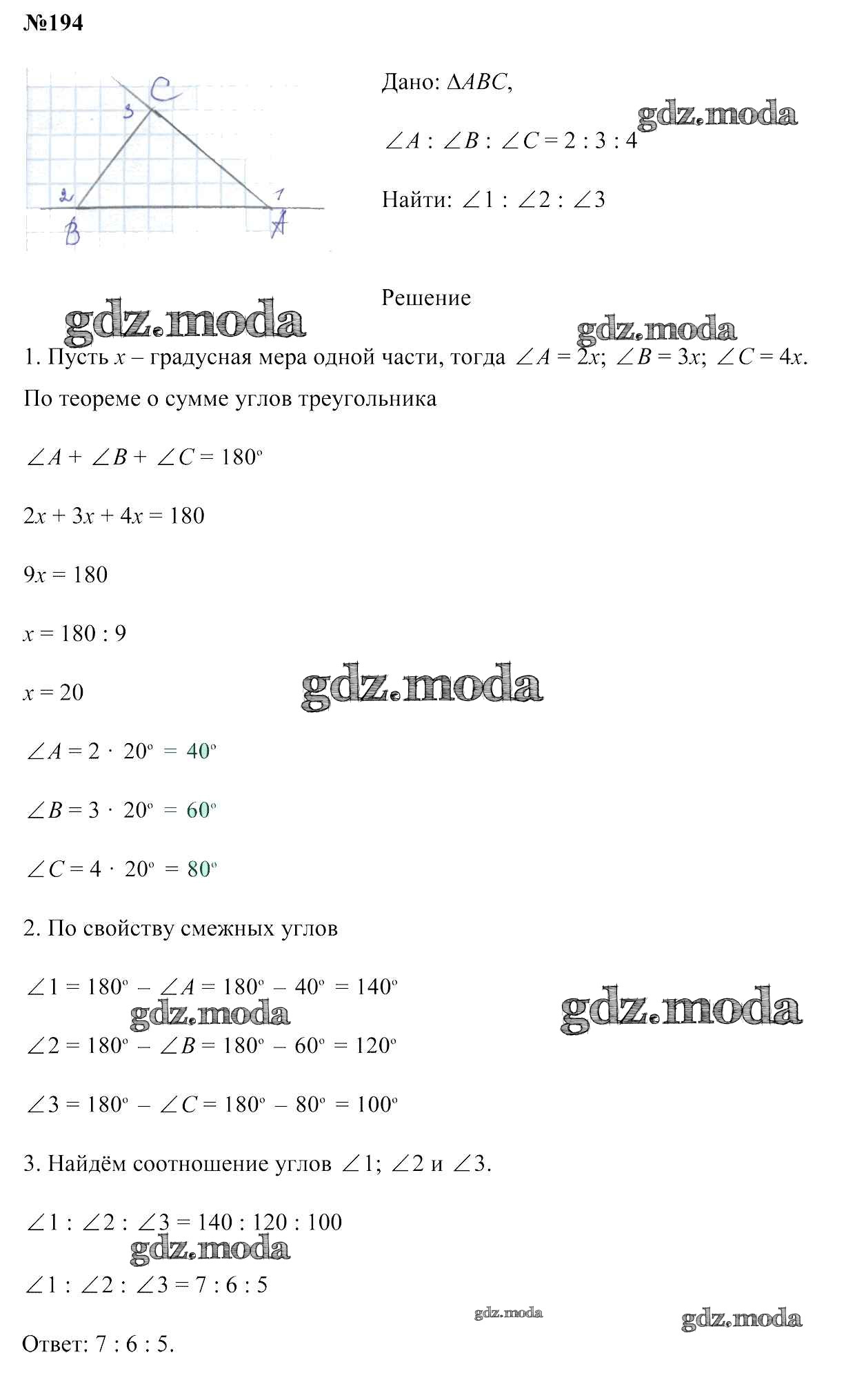 ОТВЕТ на задание № 194 Учебник по Геометрии 7 класс Казаков