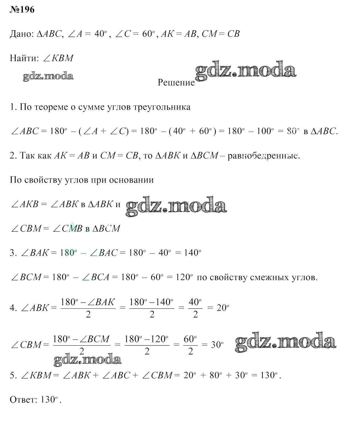 ОТВЕТ на задание № 196 Учебник по Геометрии 7 класс Казаков