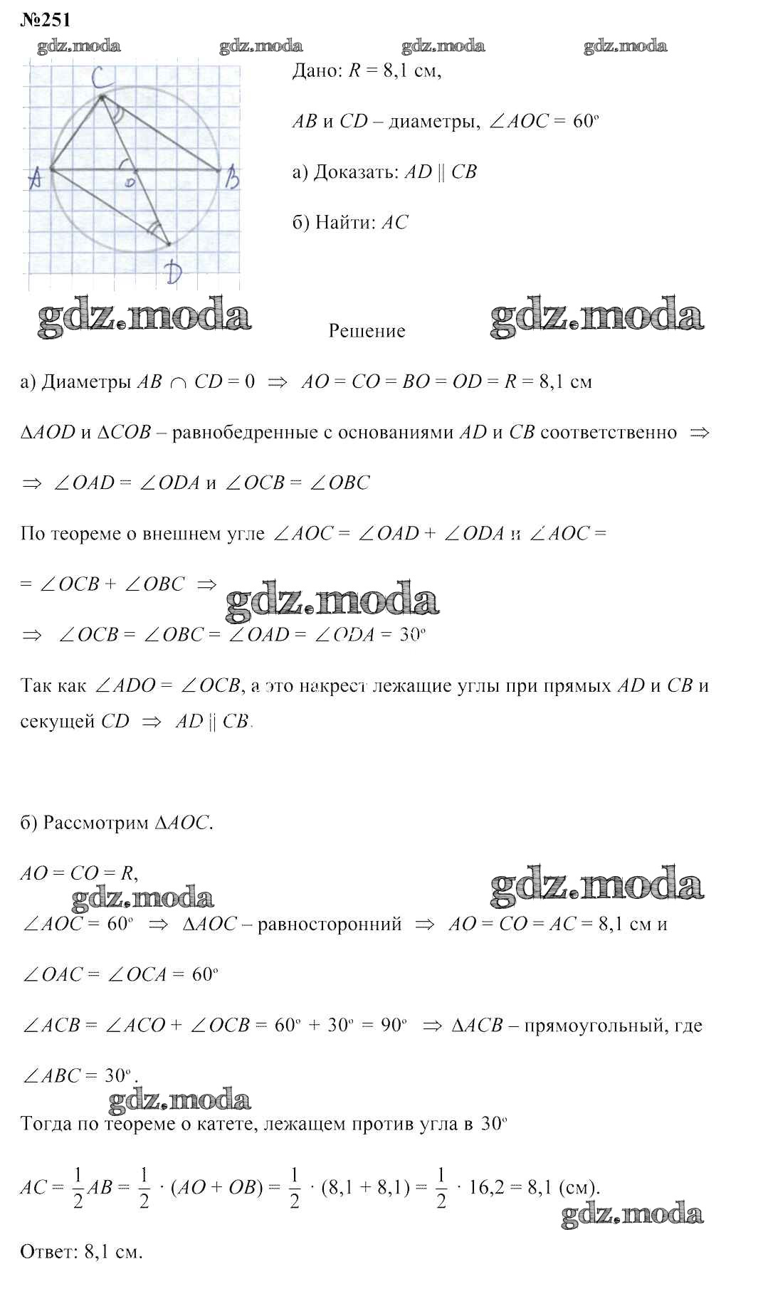ОТВЕТ на задание № 251 Учебник по Геометрии 7 класс Казаков