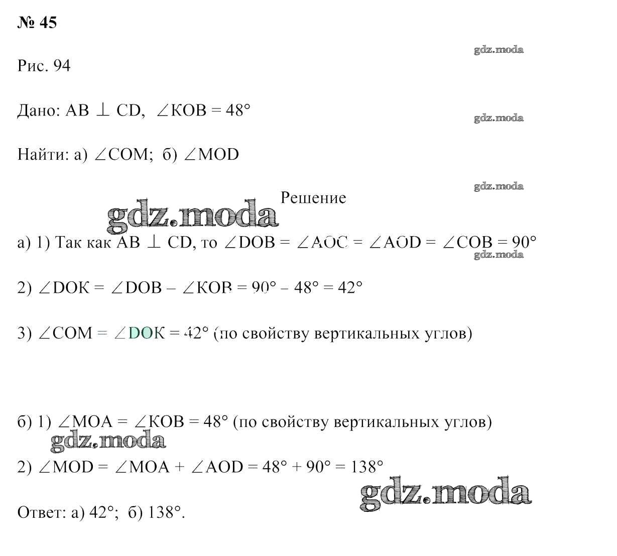 ОТВЕТ на задание № 45 Учебник по Геометрии 7 класс Казаков