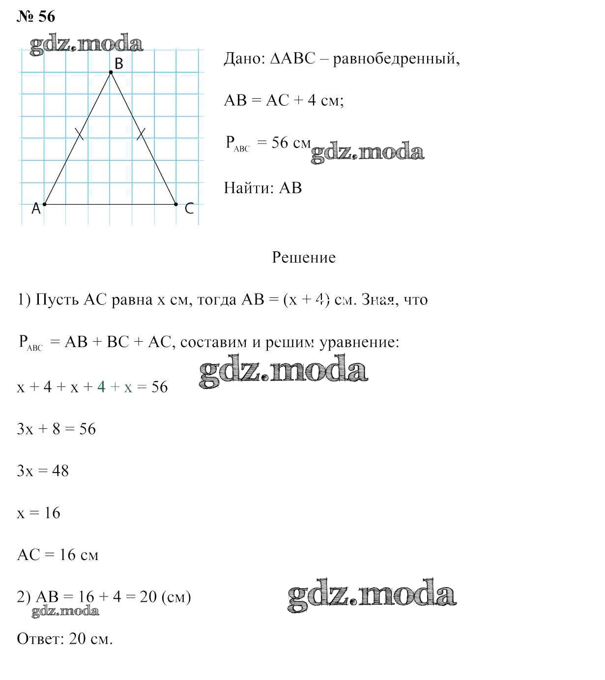ОТВЕТ на задание № 56 Учебник по Геометрии 7 класс Казаков