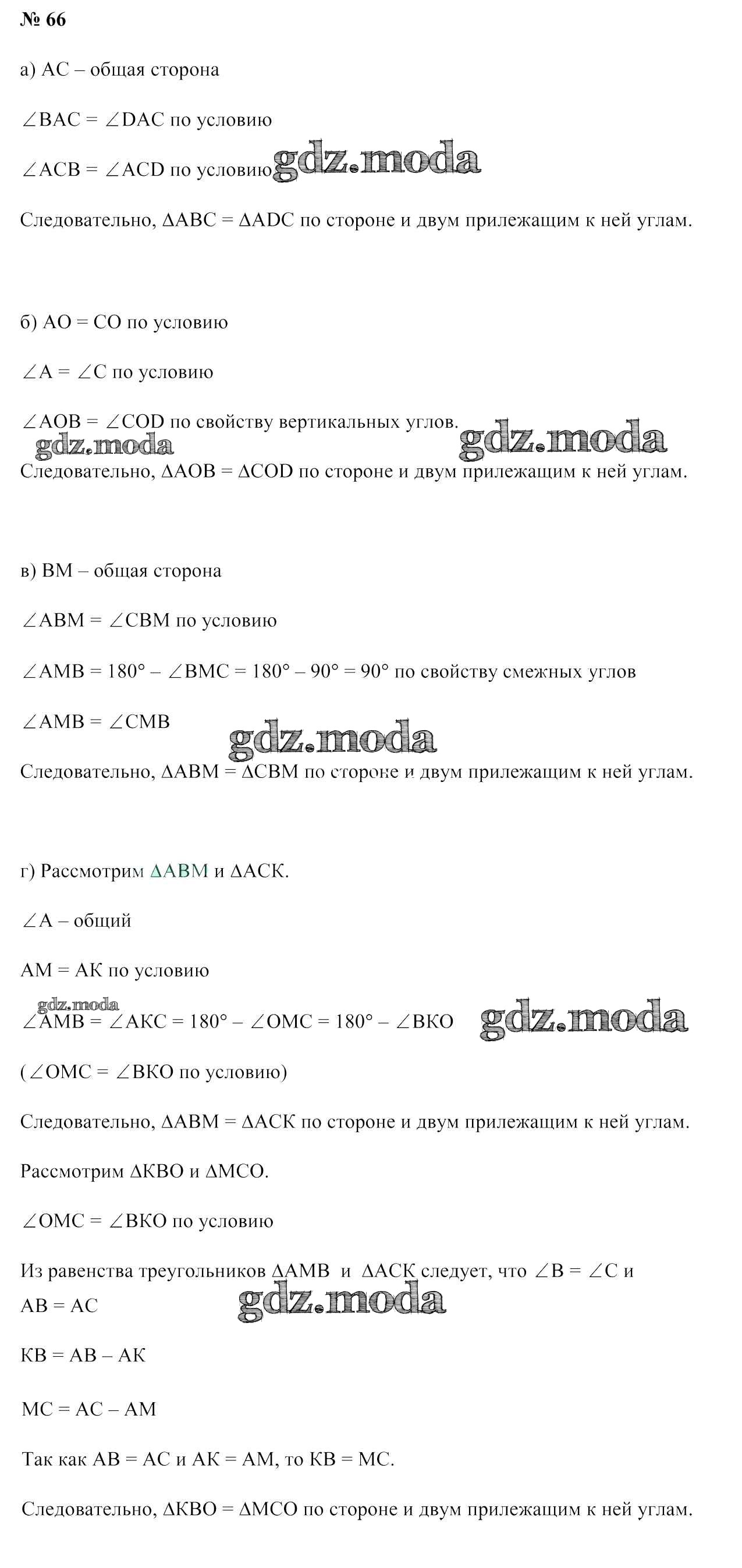 ОТВЕТ на задание № 66 Учебник по Геометрии 7 класс Казаков