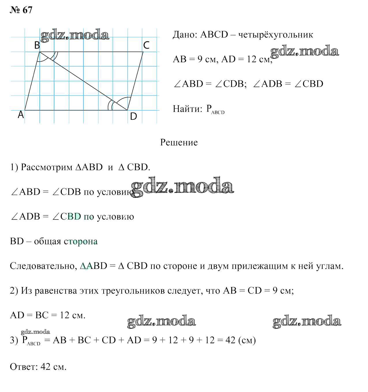 ОТВЕТ на задание № 67 Учебник по Геометрии 7 класс Казаков