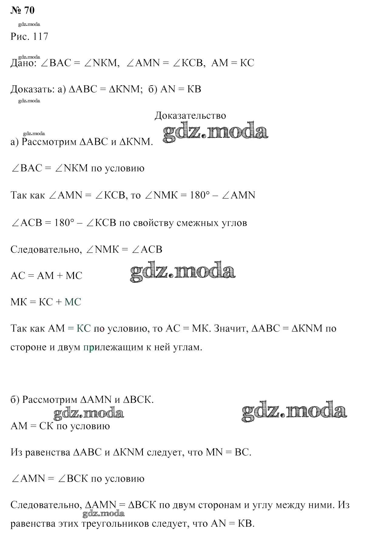 ОТВЕТ на задание № 70 Учебник по Геометрии 7 класс Казаков