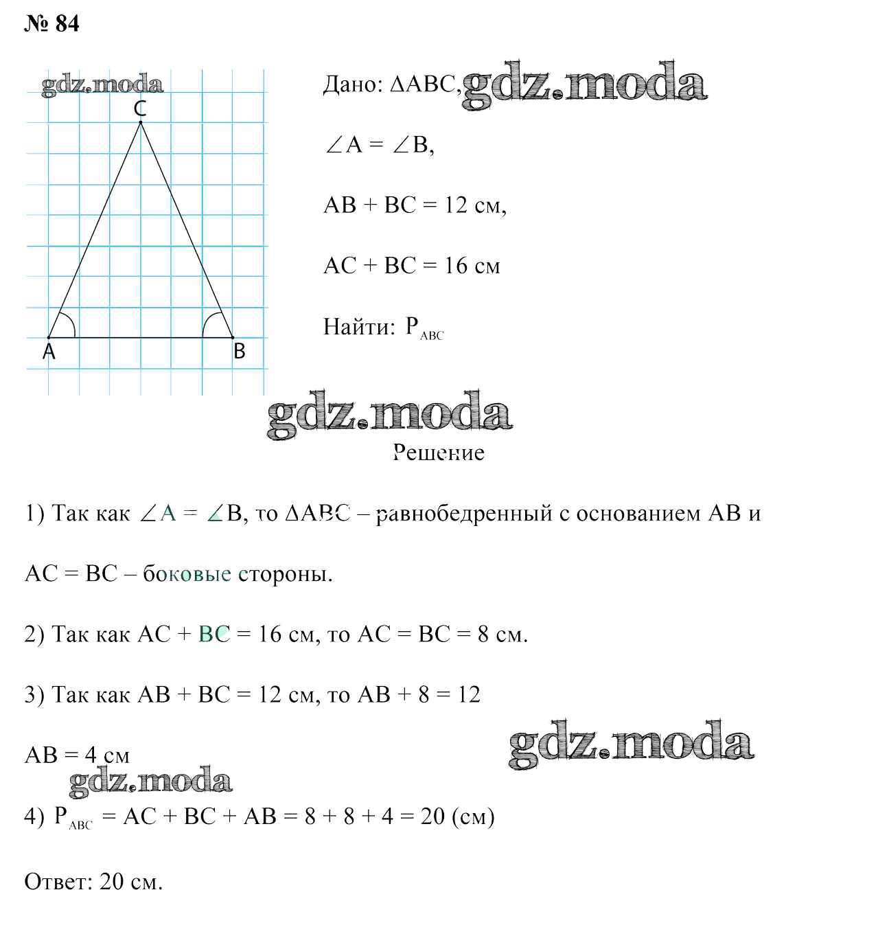 ОТВЕТ на задание № 84 Учебник по Геометрии 7 класс Казаков