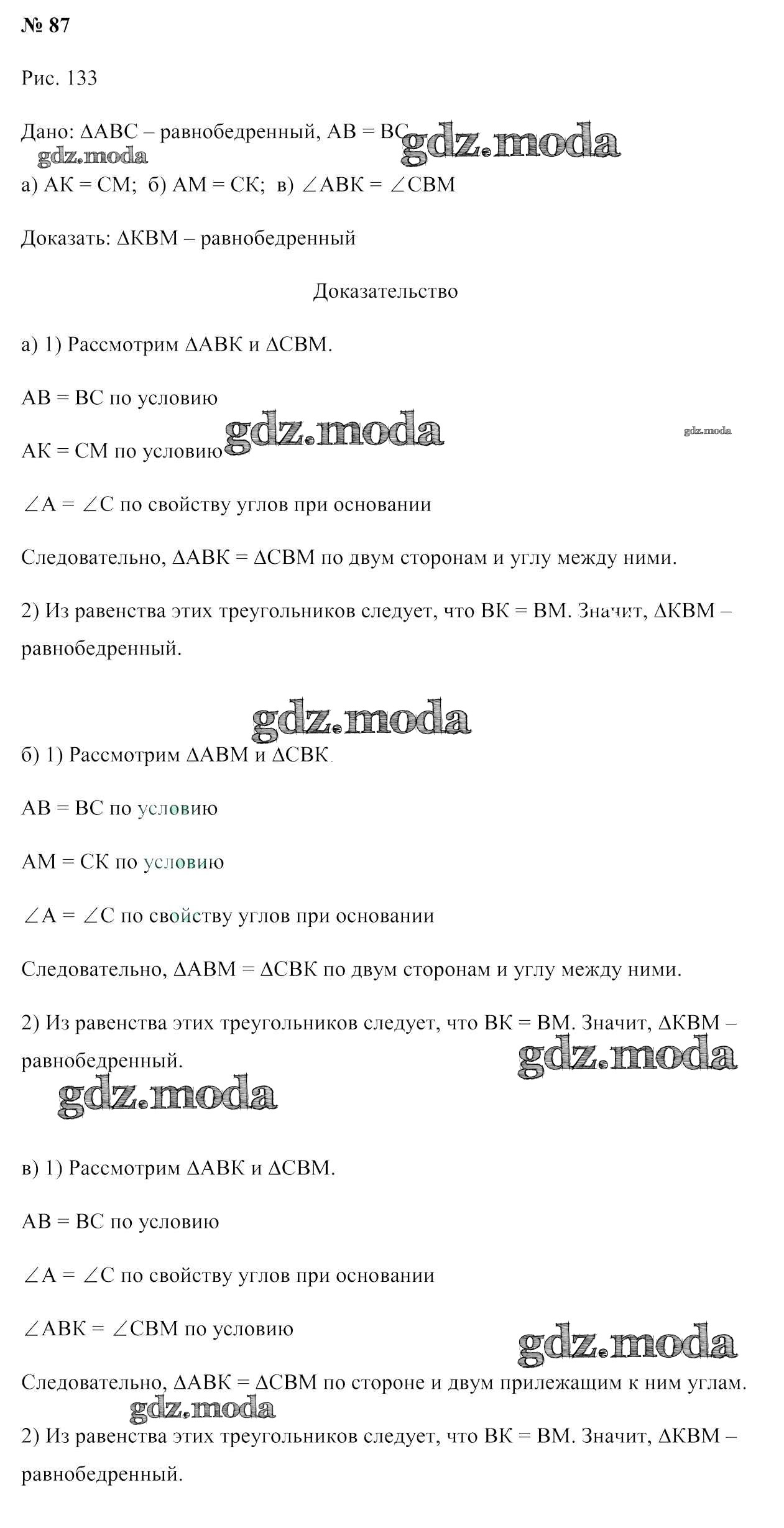 ОТВЕТ на задание № 87 Учебник по Геометрии 7 класс Казаков