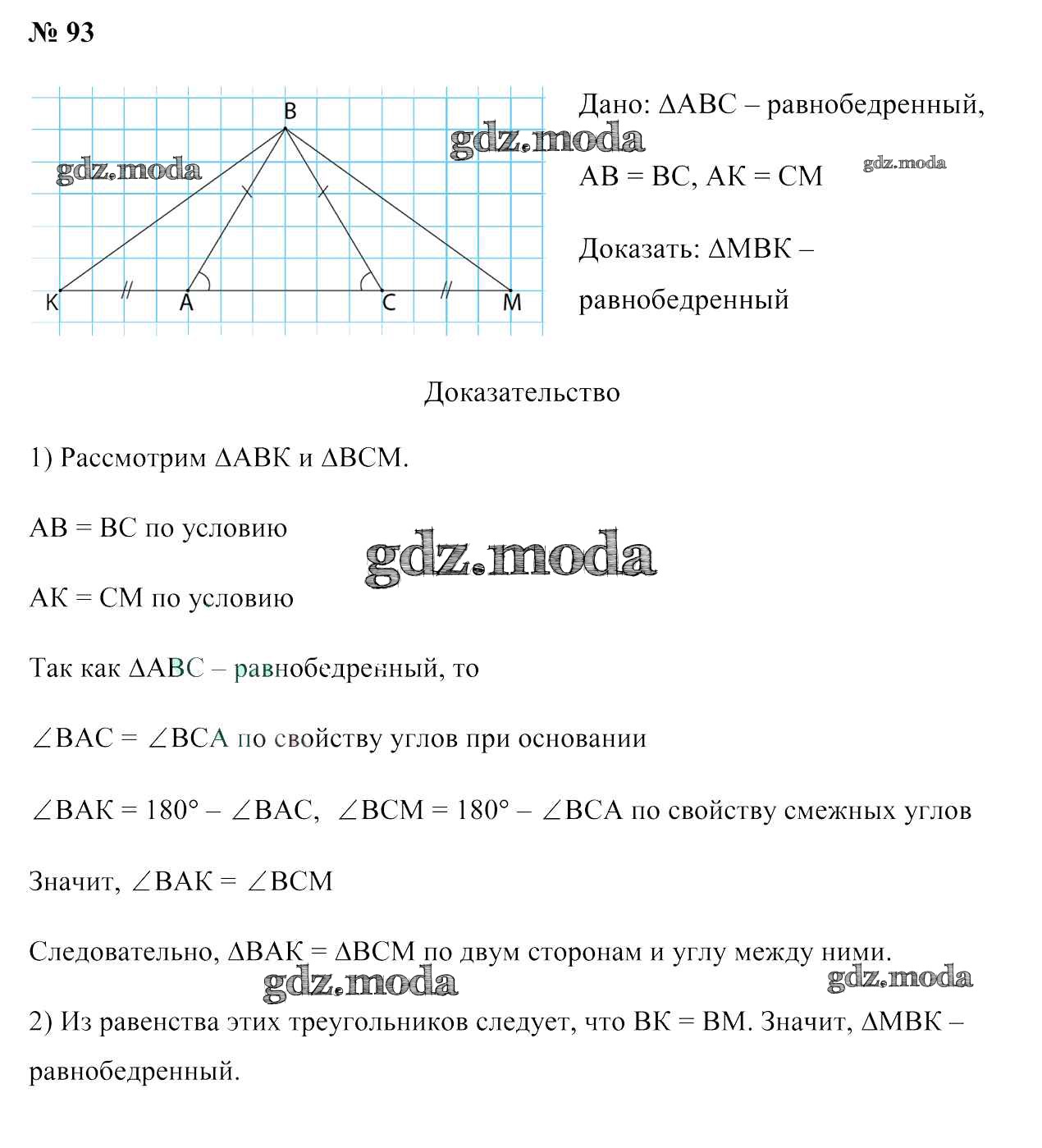 ОТВЕТ на задание № 93 Учебник по Геометрии 7 класс Казаков
