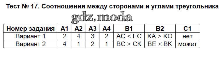 ОТВЕТ на задание № 17 Контрольно-измерительные материалы (КИМ) по Геометрии 7 класс Гаврилова