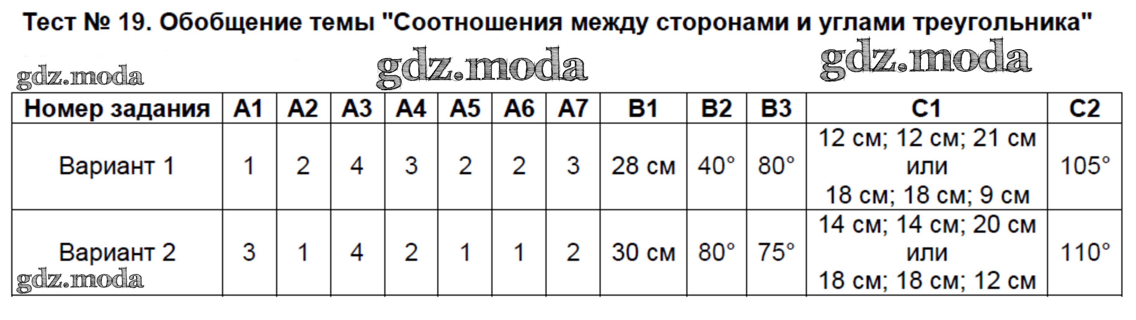ОТВЕТ на задание № 19 Контрольно-измерительные материалы (КИМ) по Геометрии 7 класс Гаврилова