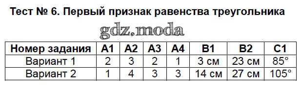ОТВЕТ на задание № 6 Контрольно-измерительные материалы (КИМ) по Геометрии 7 класс Гаврилова