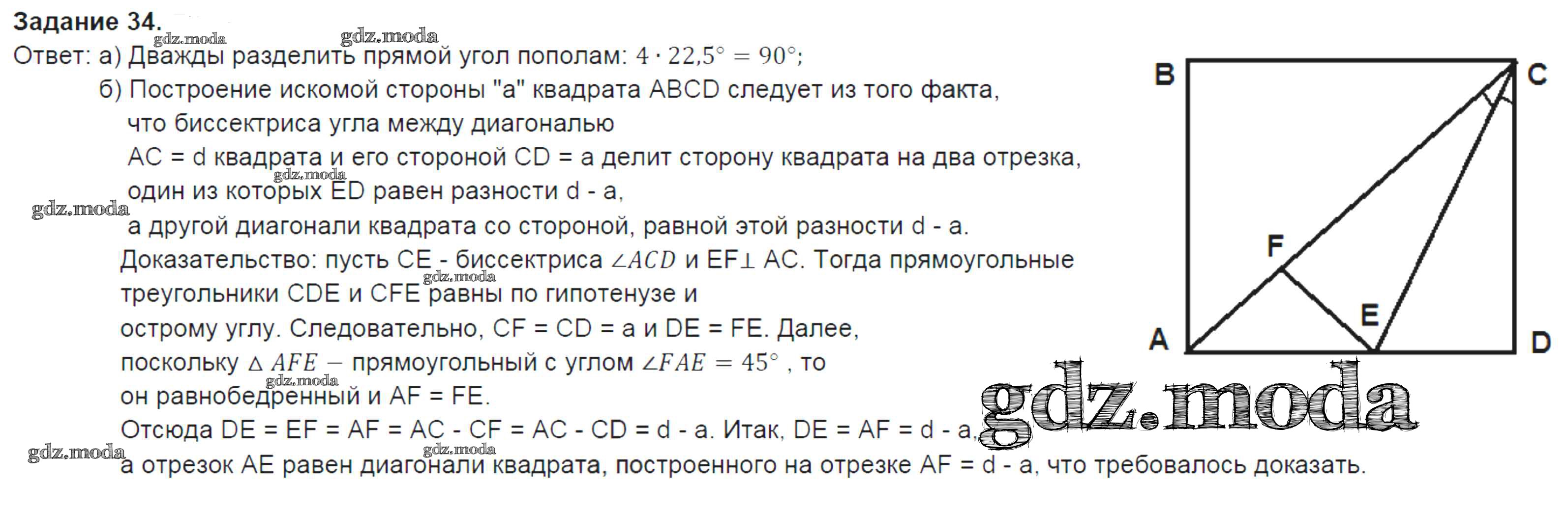 ГДЗ решение к заданию № 34 Геометрия 7 класс КИМ Рязановский А.Р. Экзамен 2014 ФГОС бесплатно на гдз.мода!