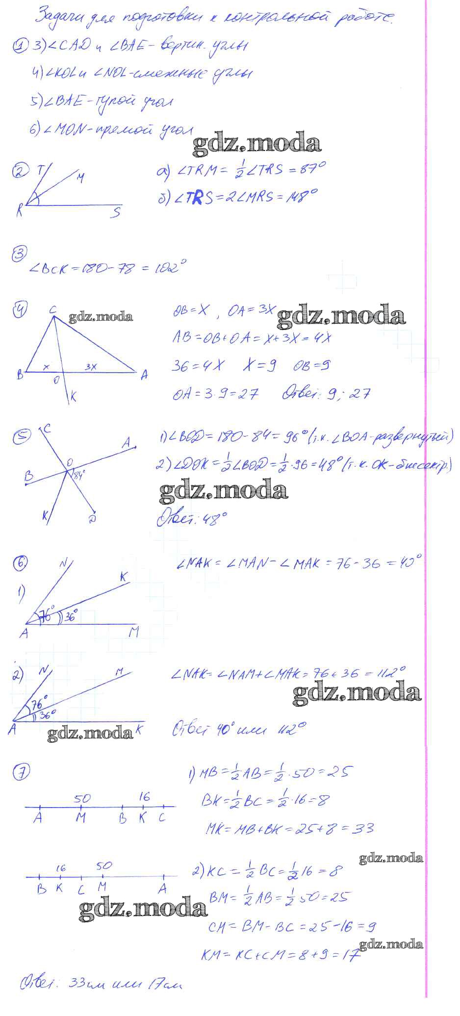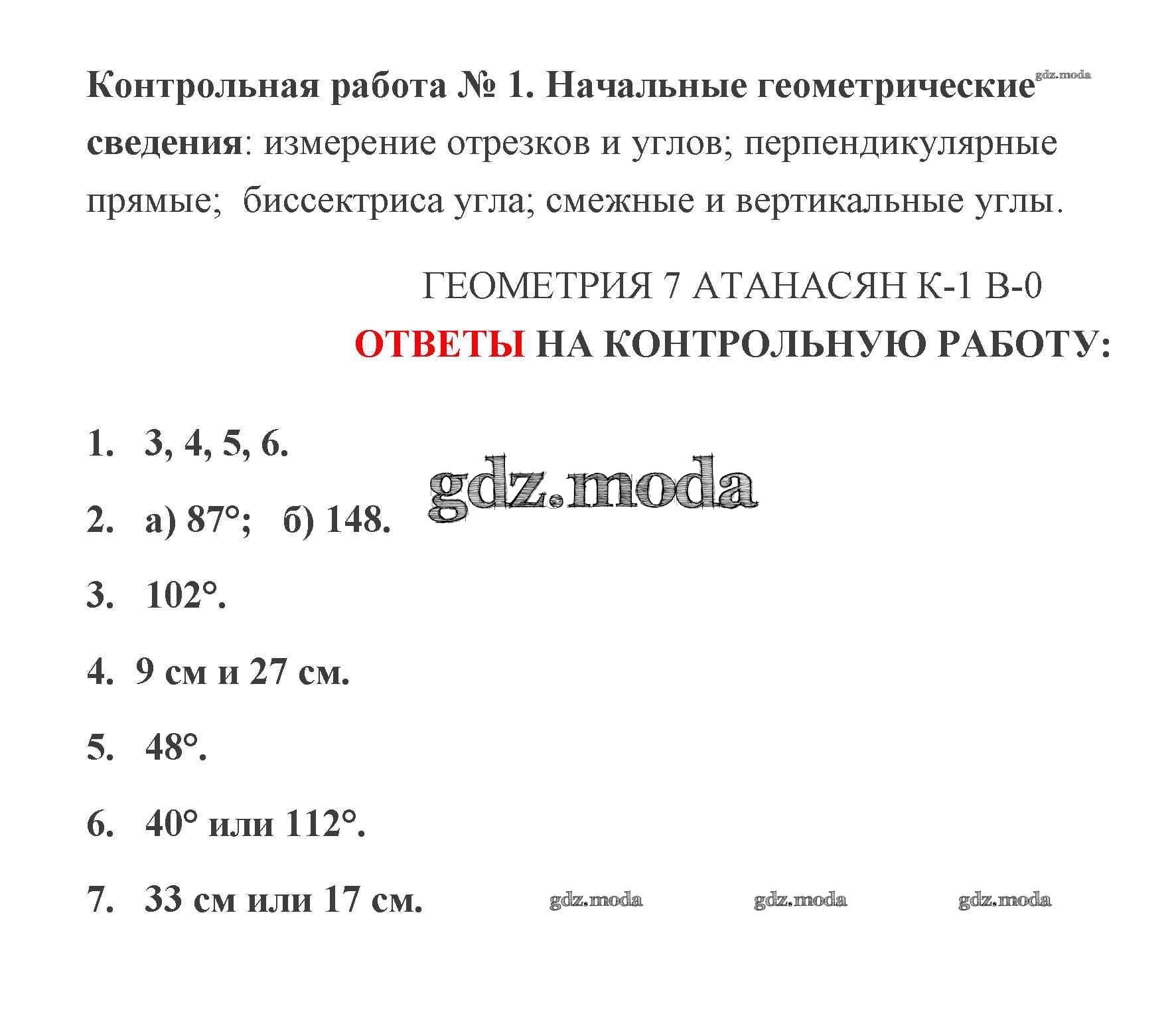ОТВЕТ на задание № Подготовка Контрольные работы по Геометрии 7 класс Мельникова УМК