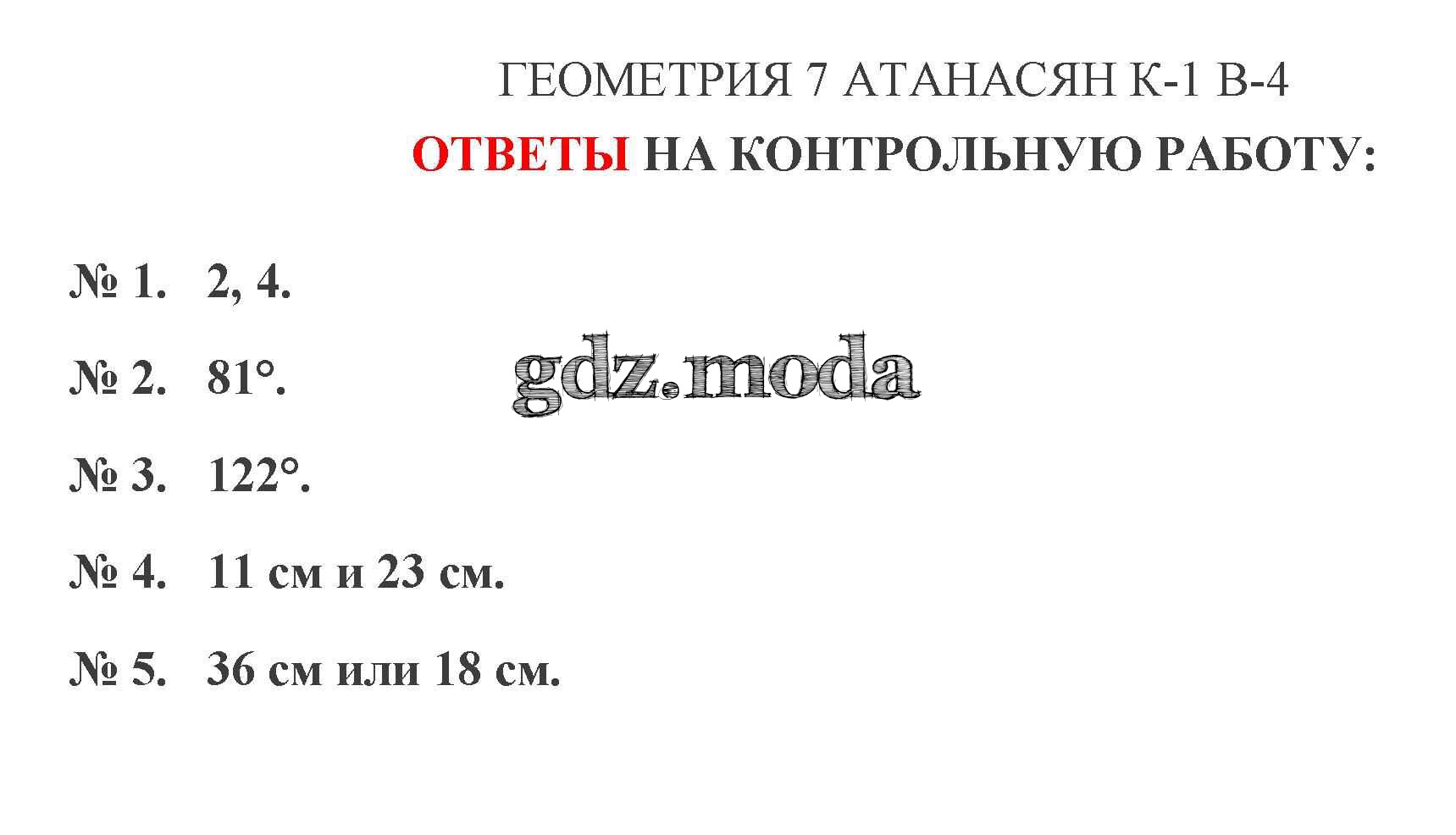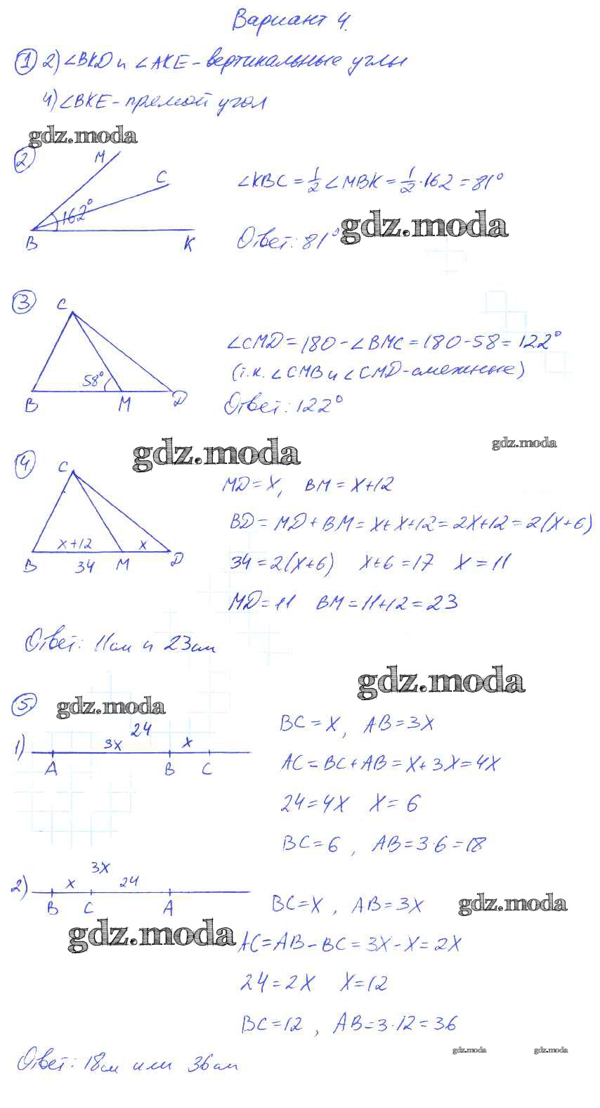 ОТВЕТ на задание № 4 Контрольные работы по Геометрии 7 класс Мельникова УМК