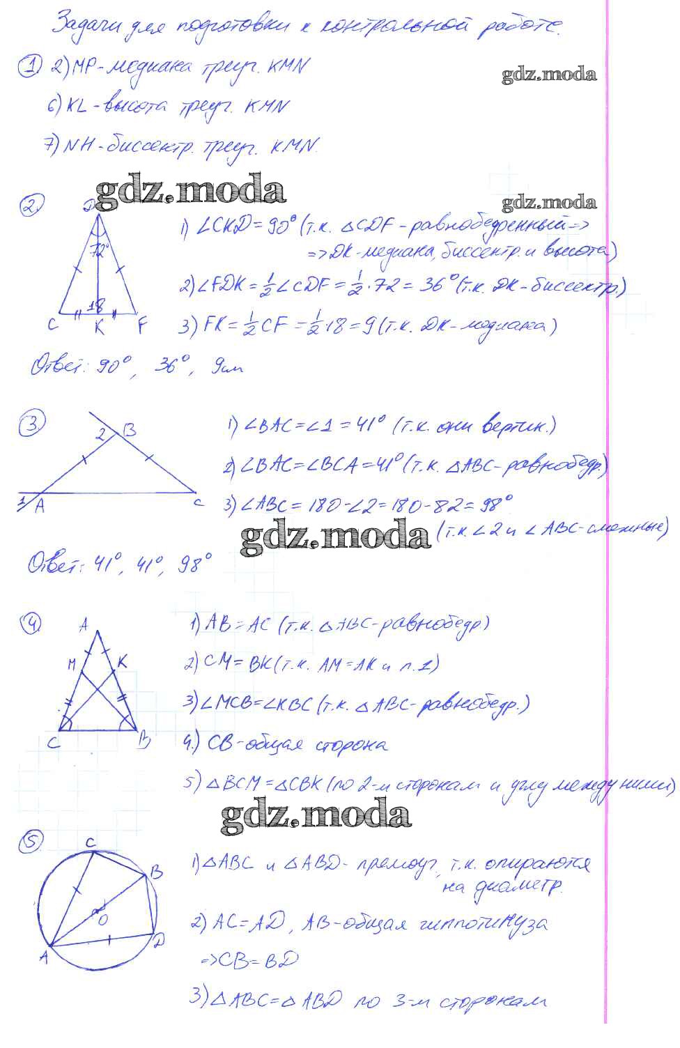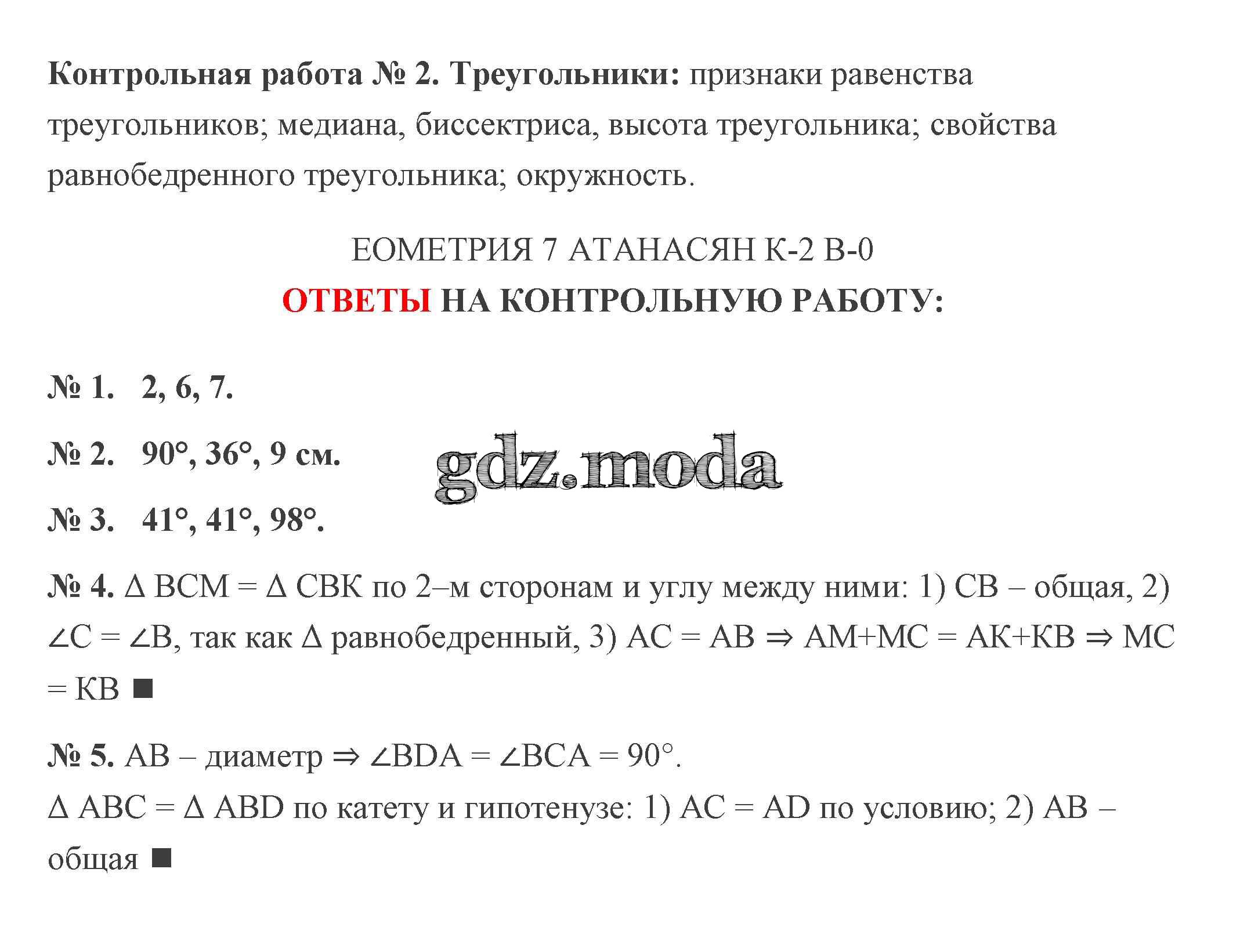 ОТВЕТ на задание № Подготовка Контрольные работы по Геометрии 7 класс Мельникова УМК