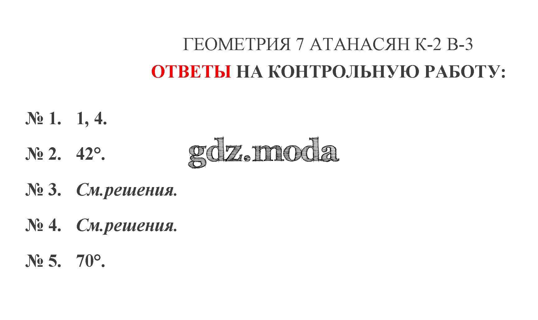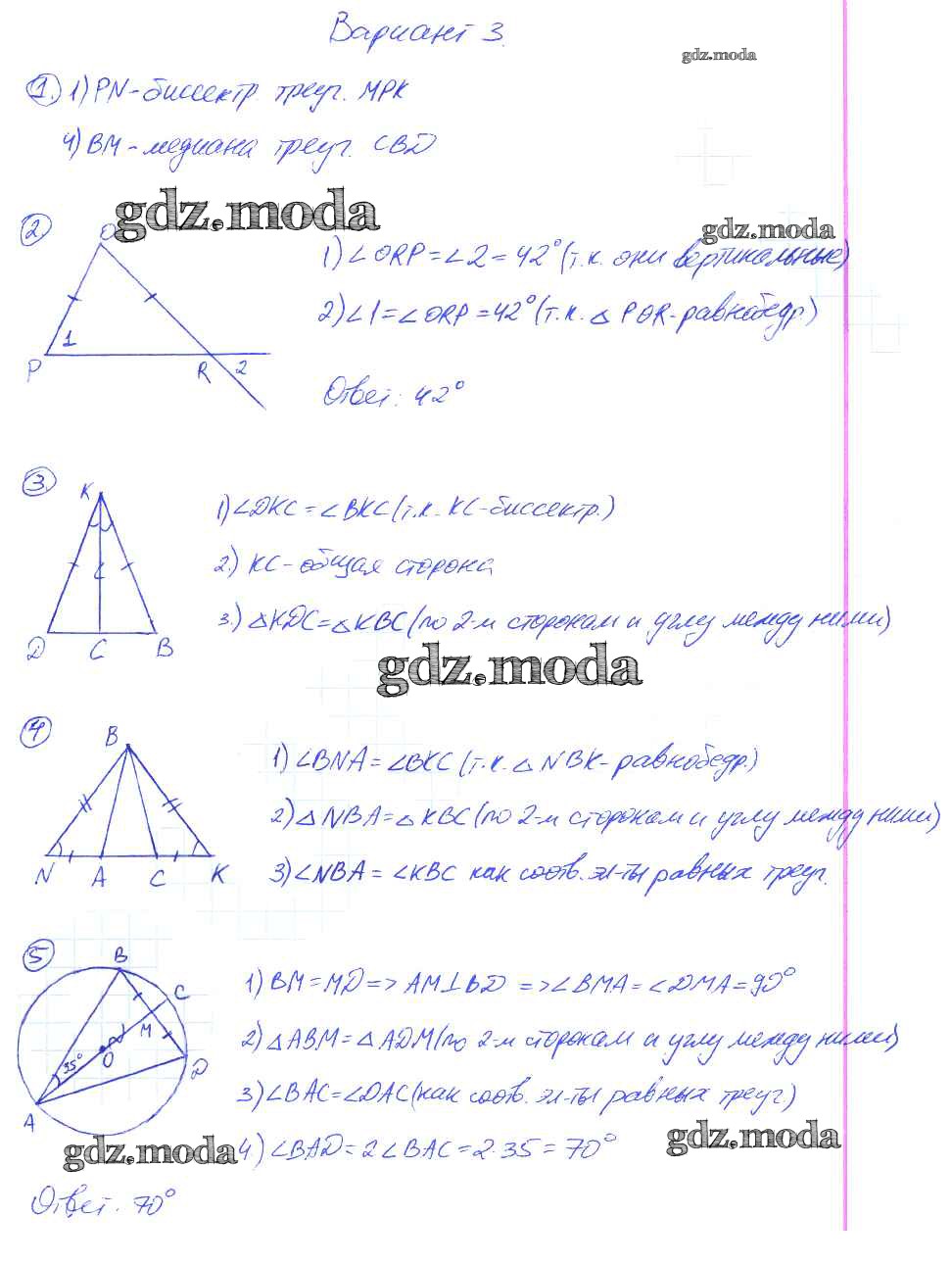 ОТВЕТ на задание № 3 Контрольные работы по Геометрии 7 класс Мельникова УМК