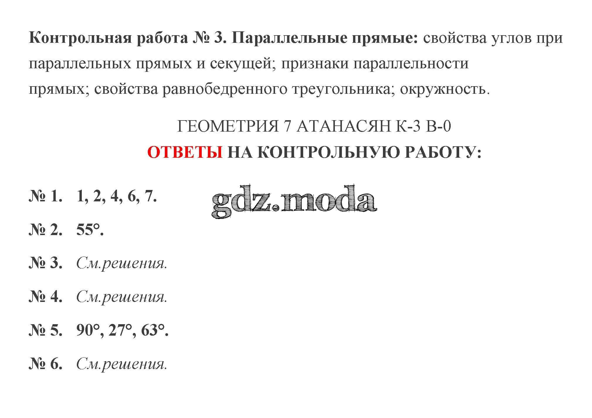 ОТВЕТ на задание № Подготовка Контрольные работы по Геометрии 7 класс Мельникова УМК