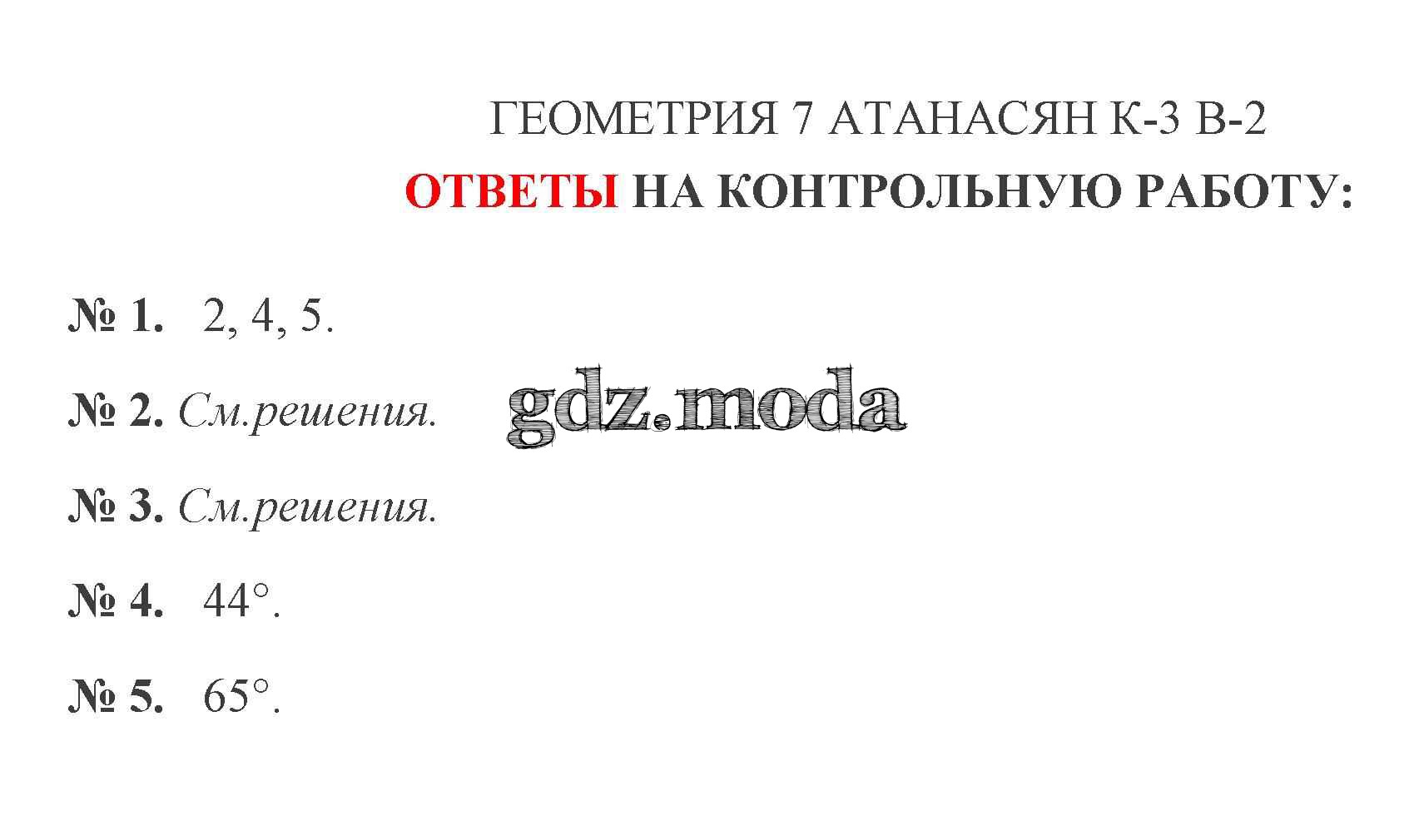 ОТВЕТ на задание № 2 Контрольные работы по Геометрии 7 класс Мельникова УМК