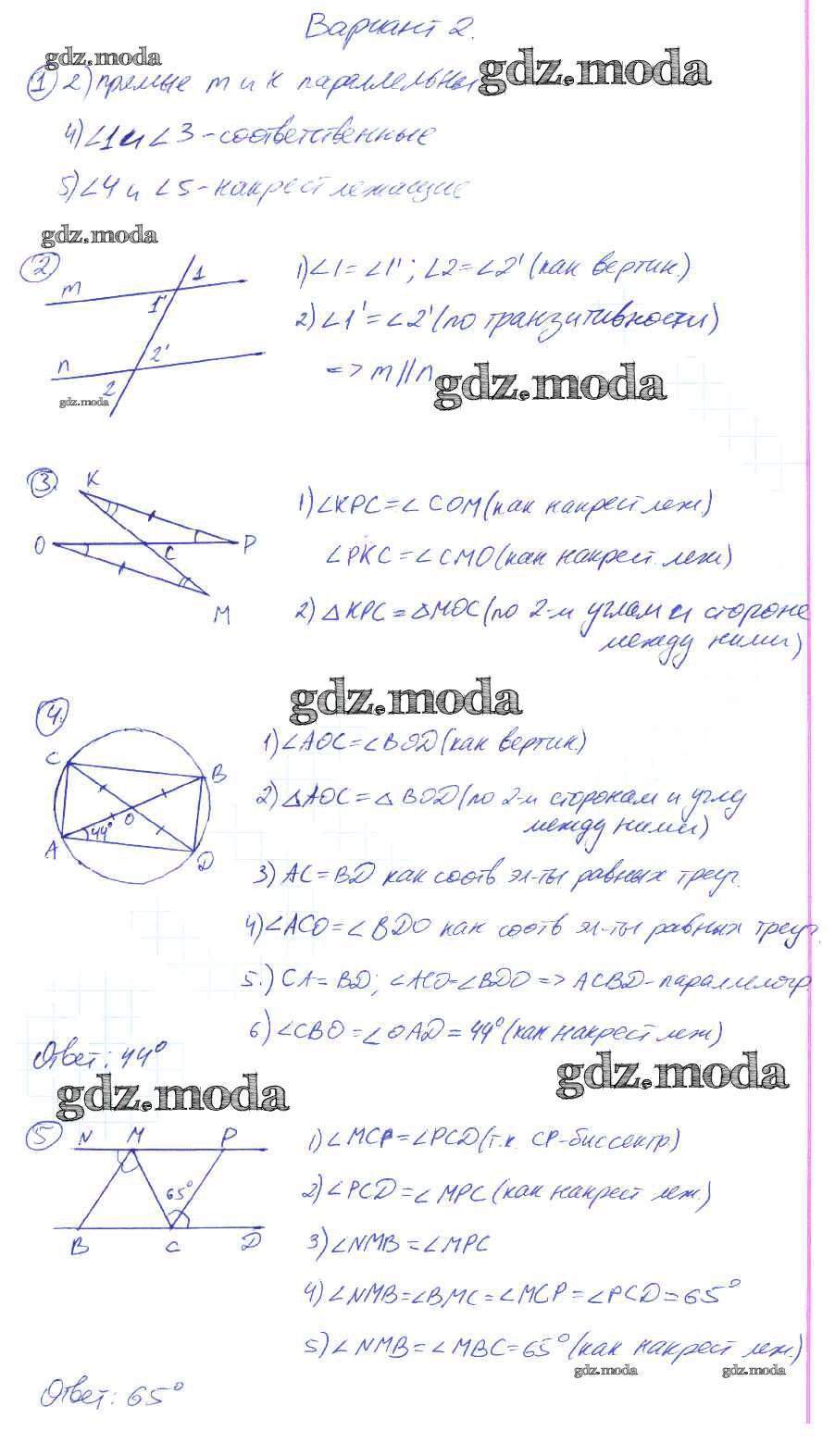 ГДЗ решение к заданию № 2 Геометрия 7 класс контрольные работы Мельникова Н.Б. ( к уч. Атанасяна Л.С.) Экзамен 2016 ФГОС бесплатно на гдз.мода!
