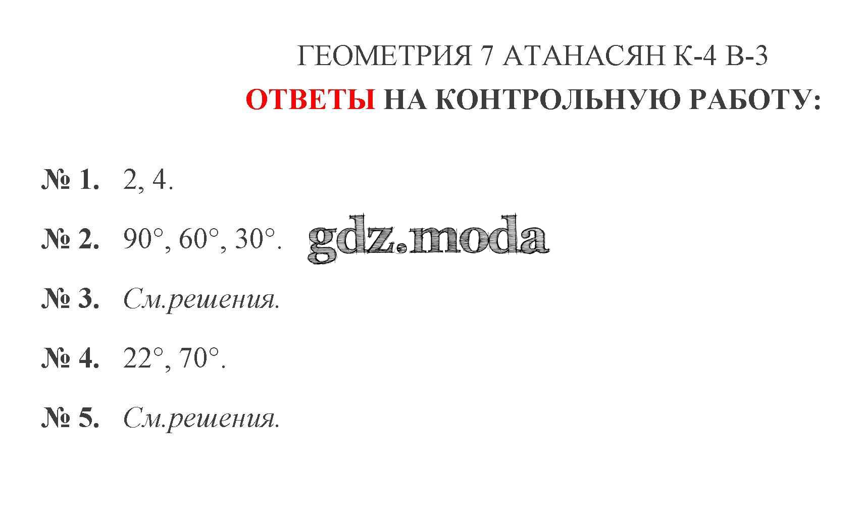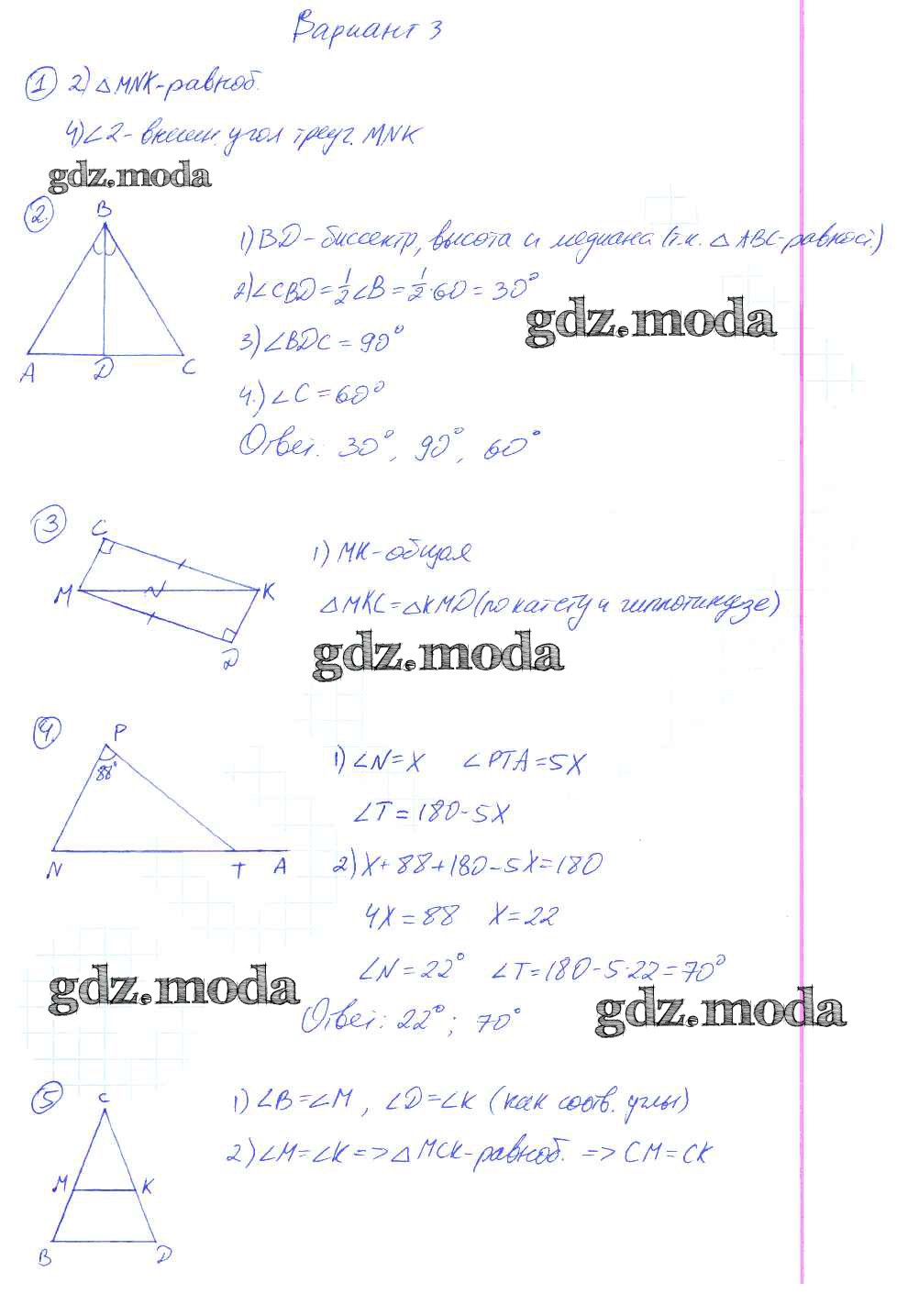 ОТВЕТ на задание № 3 Контрольные работы по Геометрии 7 класс Мельникова УМК