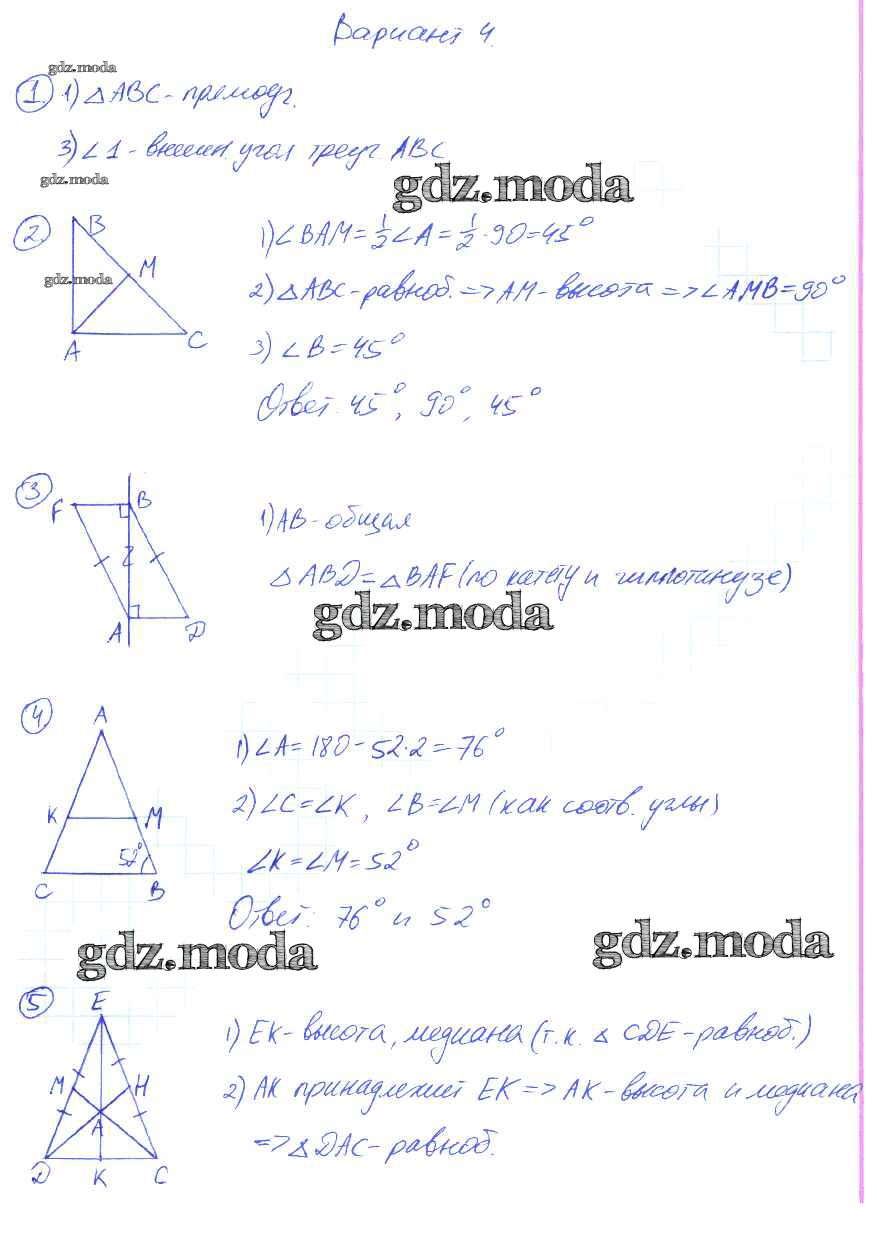 ГДЗ решение к заданию № 4 Геометрия 7 класс контрольные работы Мельникова Н.Б. ( к уч. Атанасяна Л.С.) Экзамен 2016 ФГОС бесплатно на гдз.мода!
