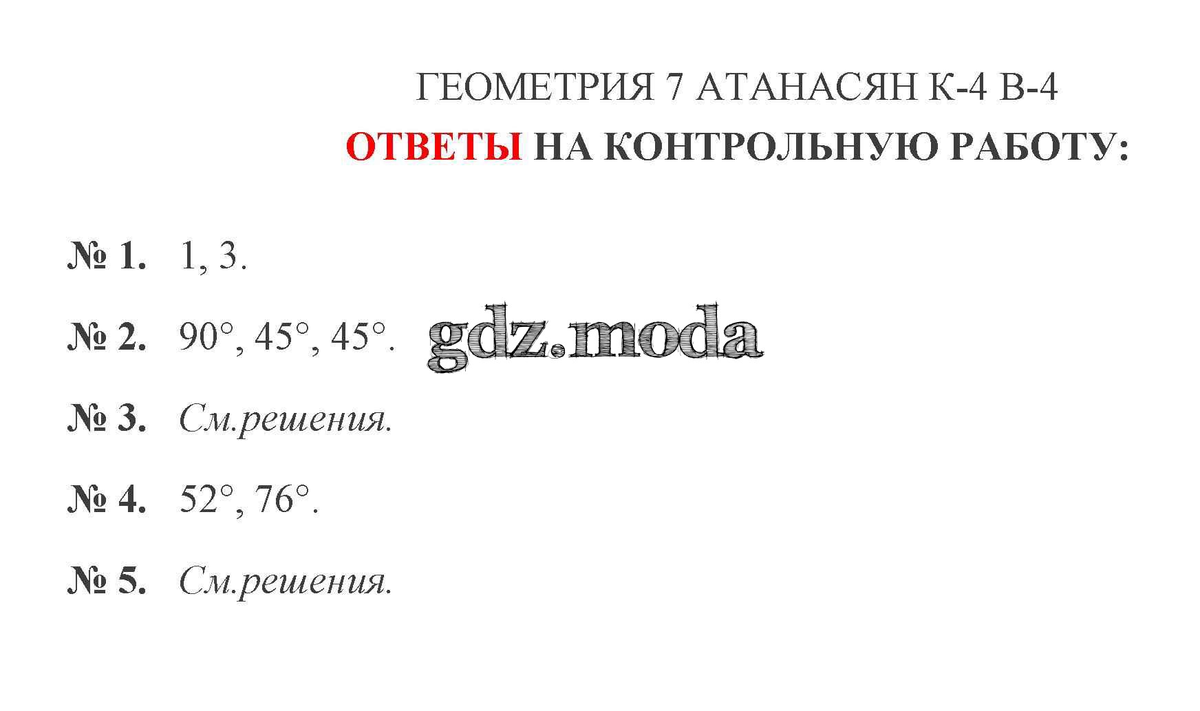 ОТВЕТ на задание № 4 Контрольные работы по Геометрии 7 класс Мельникова УМК