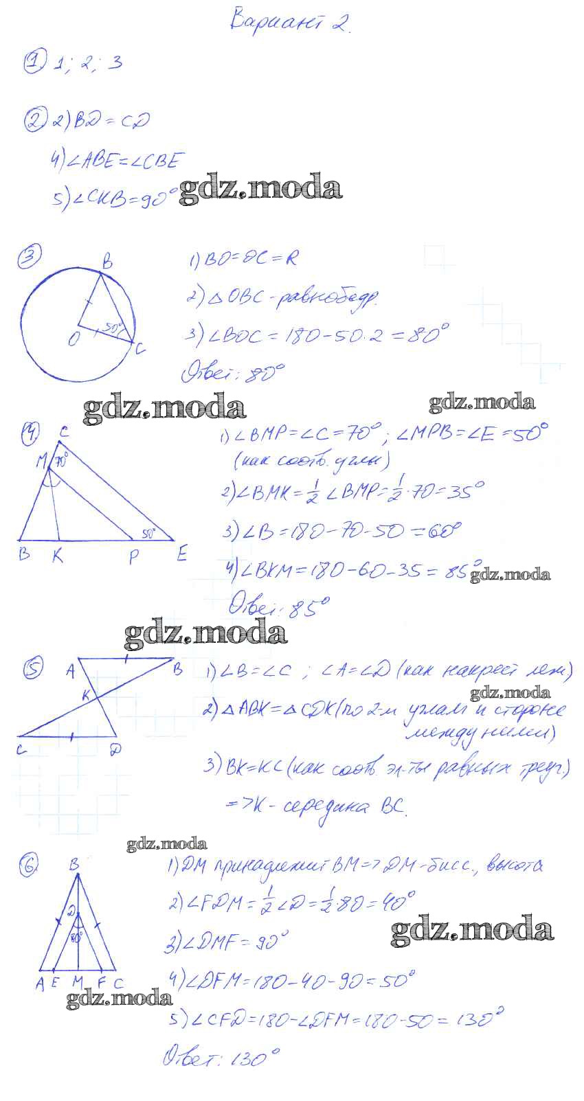 ОТВЕТ на задание № 2 Контрольные работы по Геометрии 7 класс Мельникова УМК