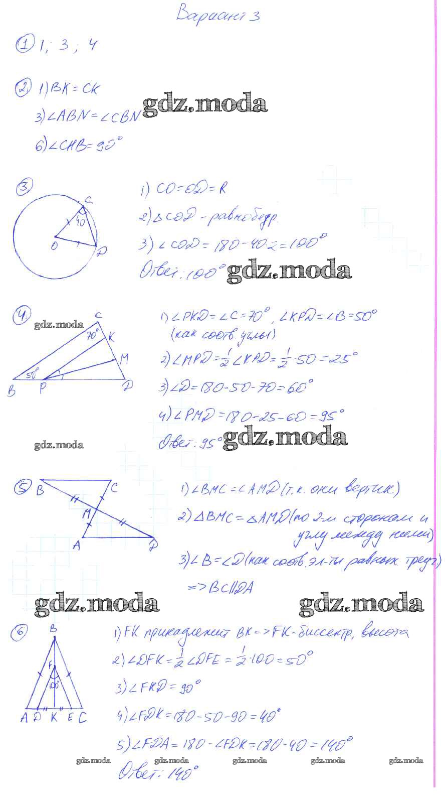 ГДЗ решение к заданию № 3 Геометрия 7 класс контрольные работы Мельникова Н.Б. ( к уч. Атанасяна Л.С.) Экзамен 2016 ФГОС бесплатно на гдз.мода!