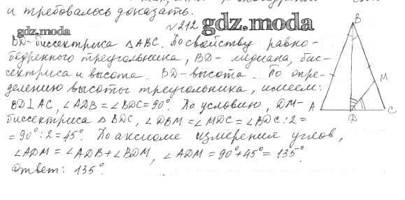 ГДЗ решение к заданию № 212 Геометрия 7 класс Мерзляк А.Г. Вентана-граф 2017 ФГОС бесплатно на гдз.мода!
