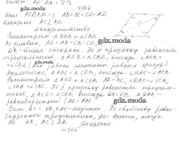 ОТВЕТ на задание № 354 Учебник по Геометрии 7 класс Мерзляк Алгоритм успеха