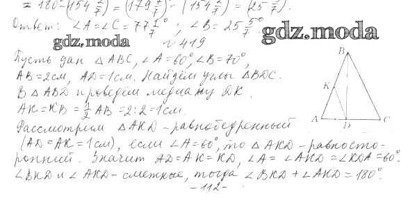 ОТВЕТ на задание № 419 Учебник по Геометрии 7 класс Мерзляк Алгоритм успеха