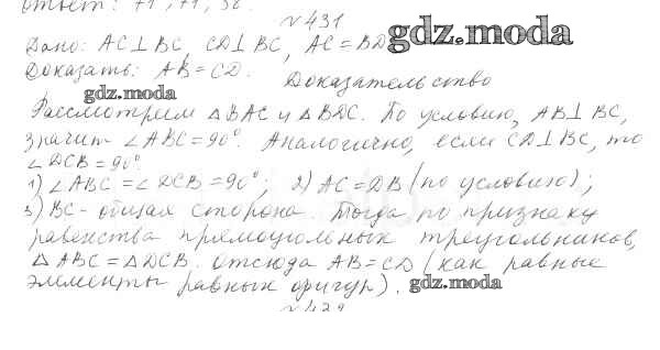 ОТВЕТ на задание № 431 Учебник по Геометрии 7 класс Мерзляк Алгоритм успеха