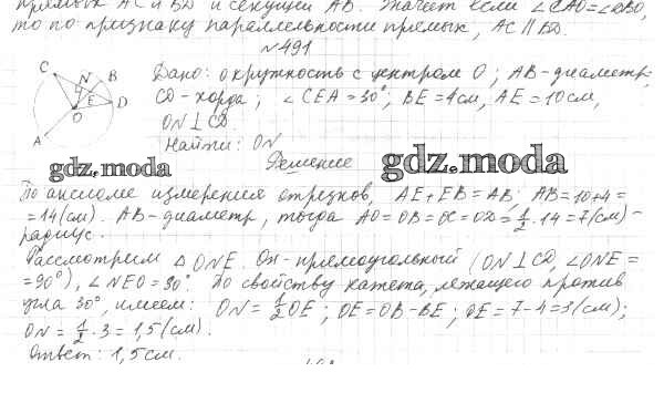ОТВЕТ на задание № 491 Учебник по Геометрии 7 класс Мерзляк Алгоритм успеха