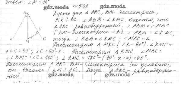 ОТВЕТ на задание № 538 Учебник по Геометрии 7 класс Мерзляк Алгоритм успеха