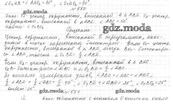 ОТВЕТ на задание № 550 Учебник по Геометрии 7 класс Мерзляк Алгоритм успеха