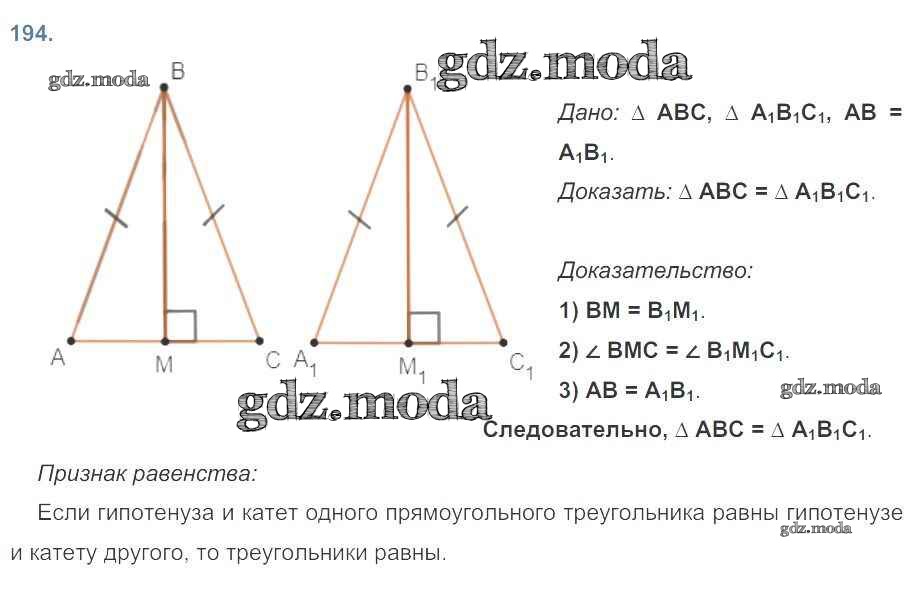 ГДЗ решение к заданию № 194 Геометрия 7 класс рабочая тетрадь Мищенко к учебнику Атанасян Экзамен (рабочие тетради) 2017 ФГОС бесплатно на гдз.мода!