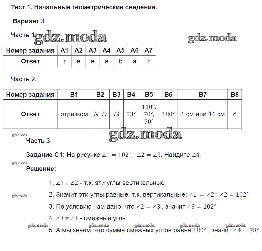 ГДЗ решение к заданию № 3 Геометрия 7 класс Тесты Фарков А.В. (к новому уч. Атанасяна Л.С.) Экзамен 2015 ФГОС бесплатно на гдз.мода!