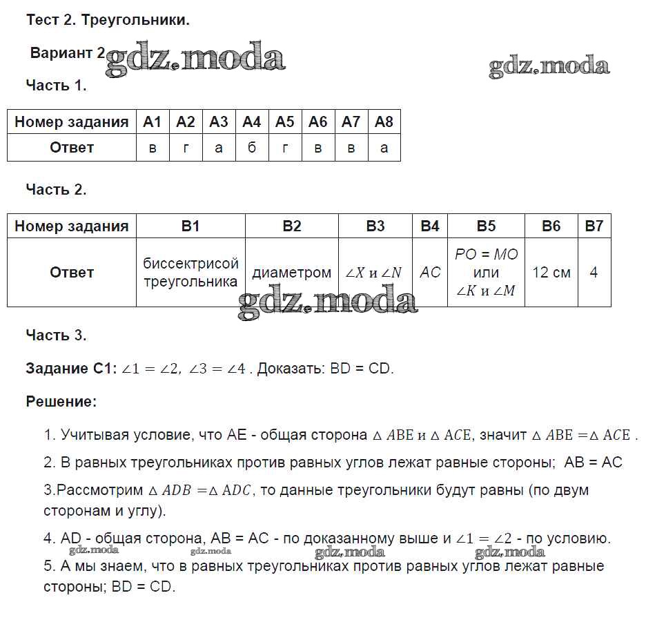 ГДЗ решение к заданию № 2 Геометрия 7 класс Тесты Фарков А.В. (к новому уч. Атанасяна Л.С.) Экзамен 2015 ФГОС бесплатно на гдз.мода!